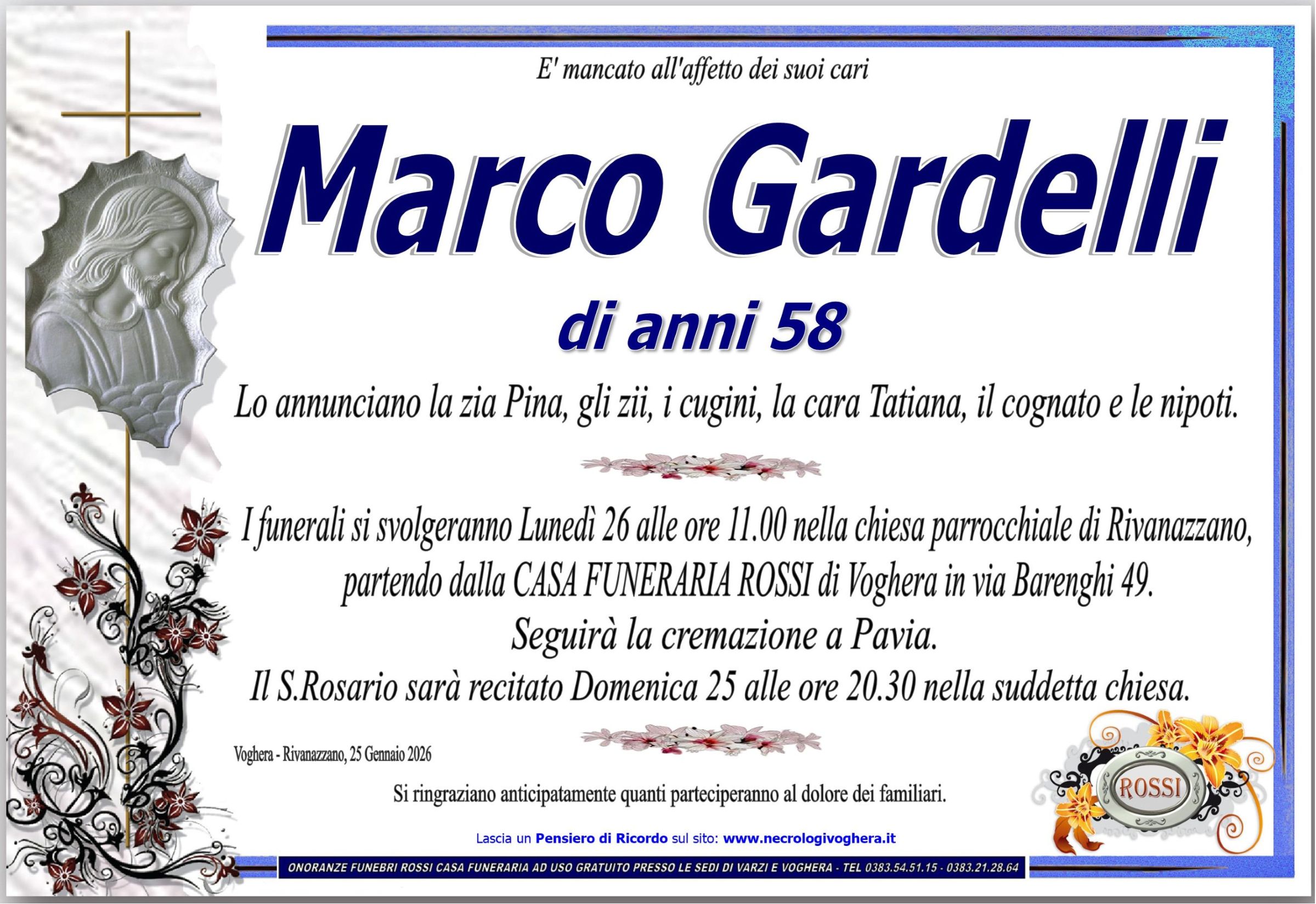 I familiari ringraziano anticipatamente tutti coloro che parteciperanno alla cerimonia funebre