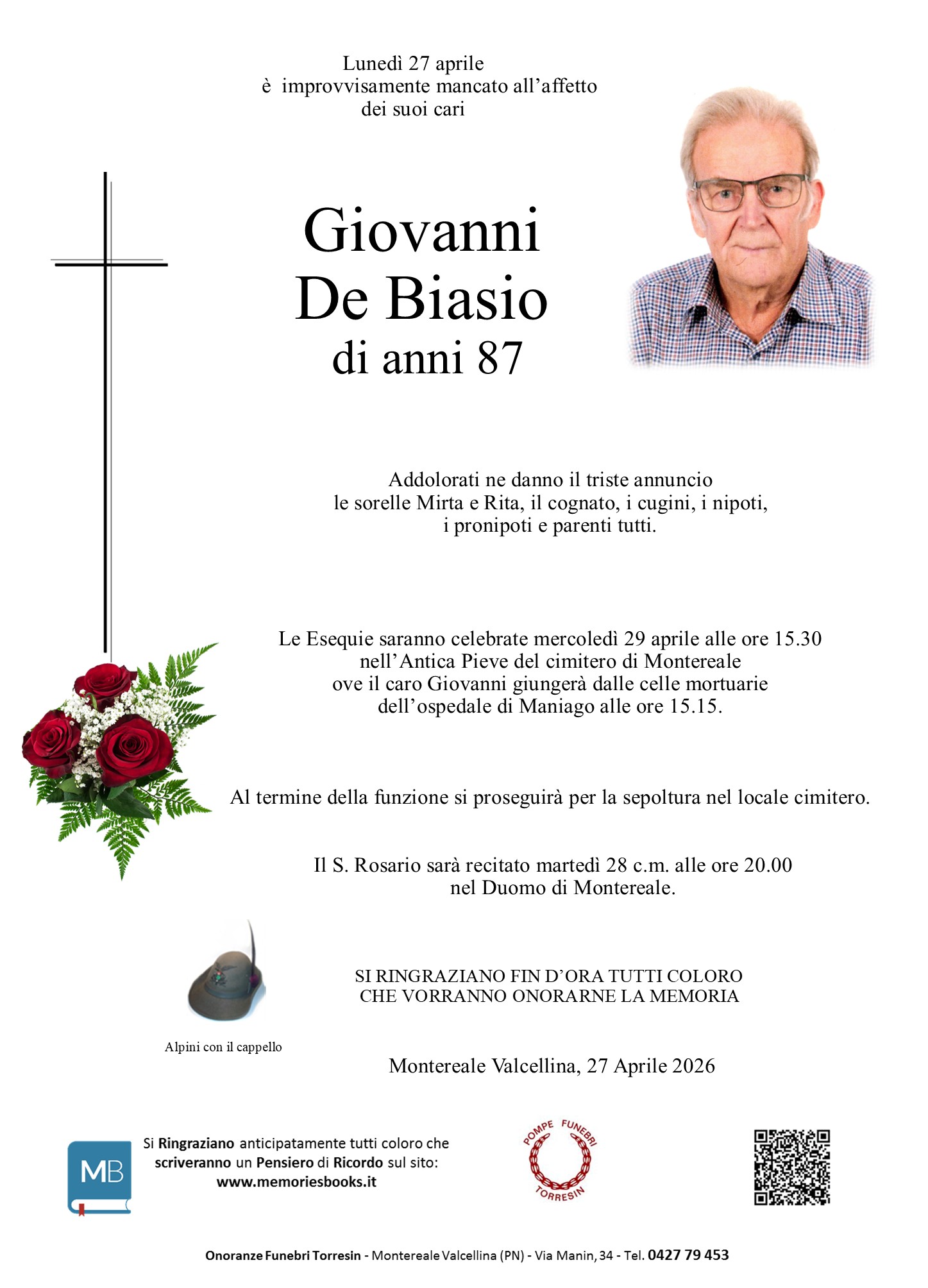 Sentite condoglianze Luigino de Biasio e Giuliana