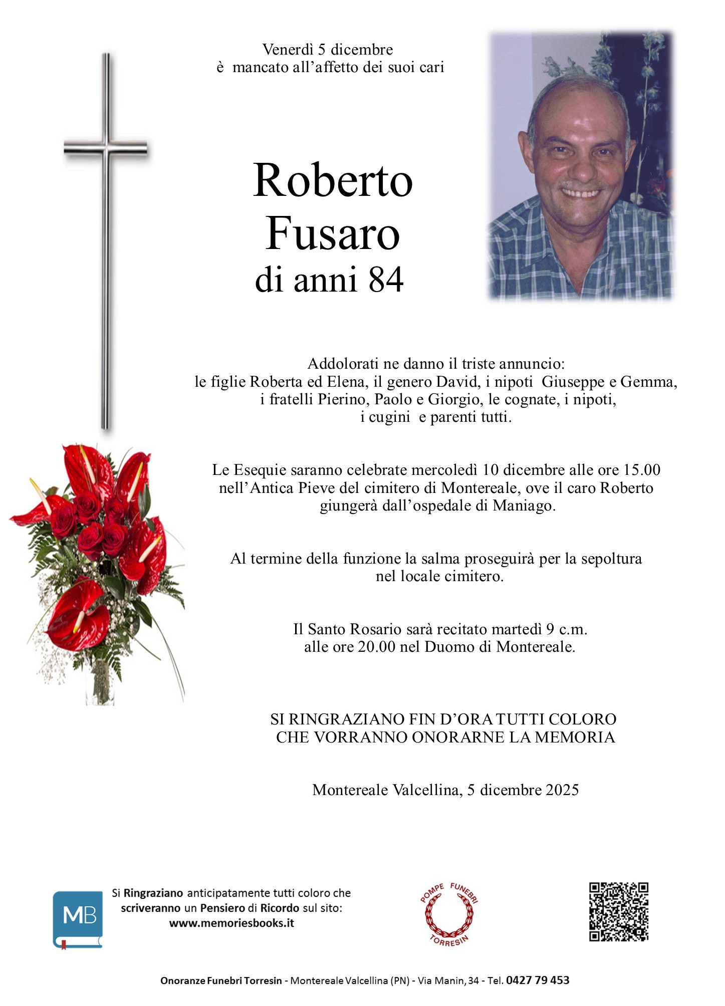 I familiari ringraziano anticipatamente tutti coloro che parteciperanno alla cerimonia funebre