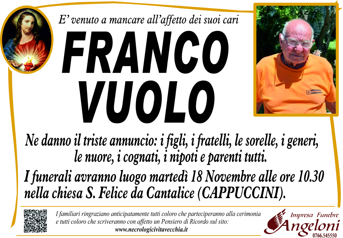 I funerali avranno luogo Martedì 18 Novembre alle ore 10.30