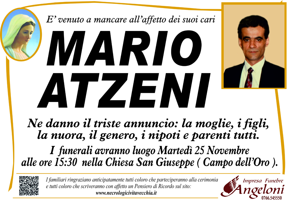 I funerali avranno luogo martedì 25 Novembre alle ore 15.30