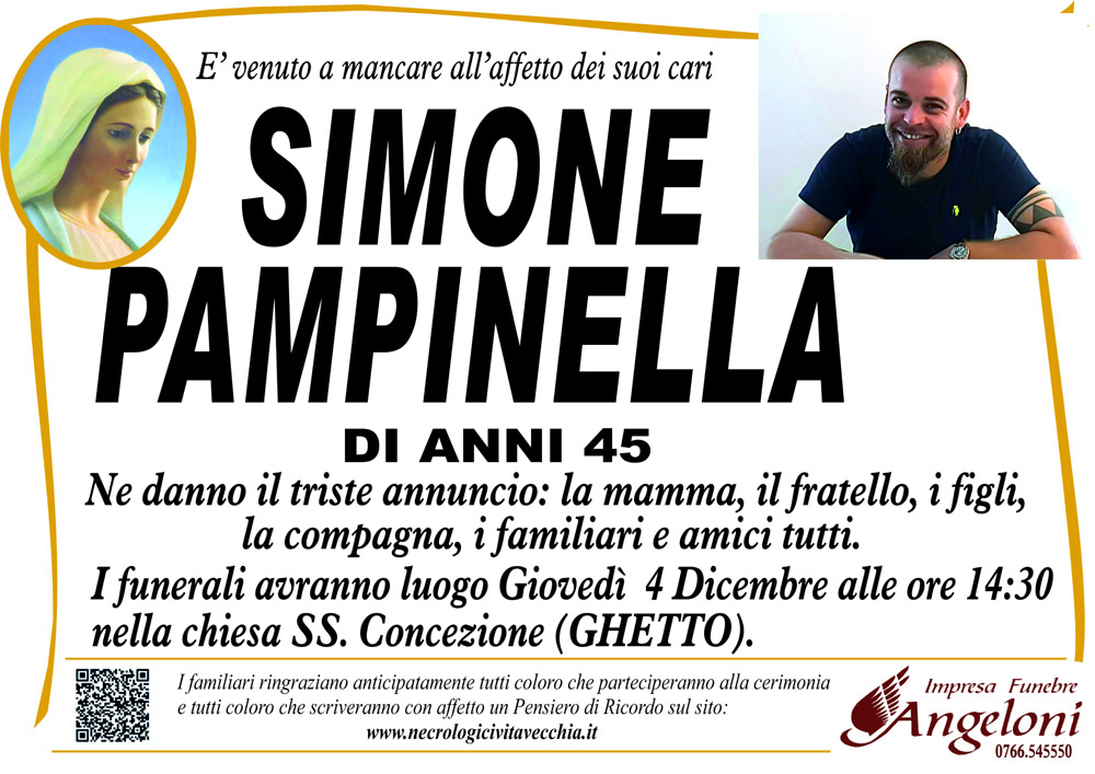 Sempre sorridente, sempre gentile e cordiale con tutti è questo il ricordo che io ho di te.Sono cresciuta con la tua pizza che non ha eguali , con i vostri sacrifici tuoi e della tua famiglia avete dato e continuate a dare lustro alla nostra città perché quando si parla di Pizzeria del Ghetto ,si parla della storia dí Civitavecchia ,grazie ! Ciao Simone Rip non doveva andar così.