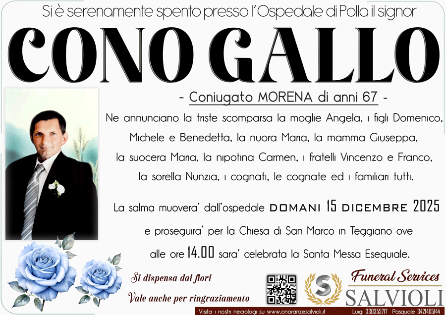 I familiari ringraziano anticipatamente tutti coloro che parteciperanno alla cerimonia funebre