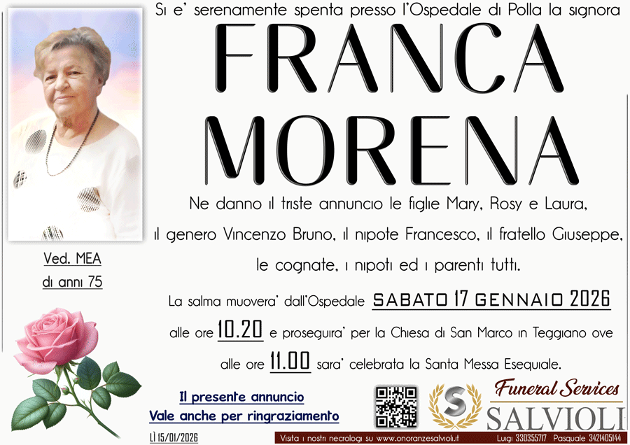 I familiari ringraziano anticipatamente tutti coloro che parteciperanno alla cerimonia funebre