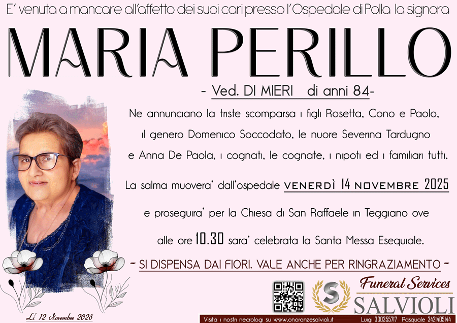 I familiari ringraziano anticipatamente tutti coloro che parteciperanno alla cerimonia funebre