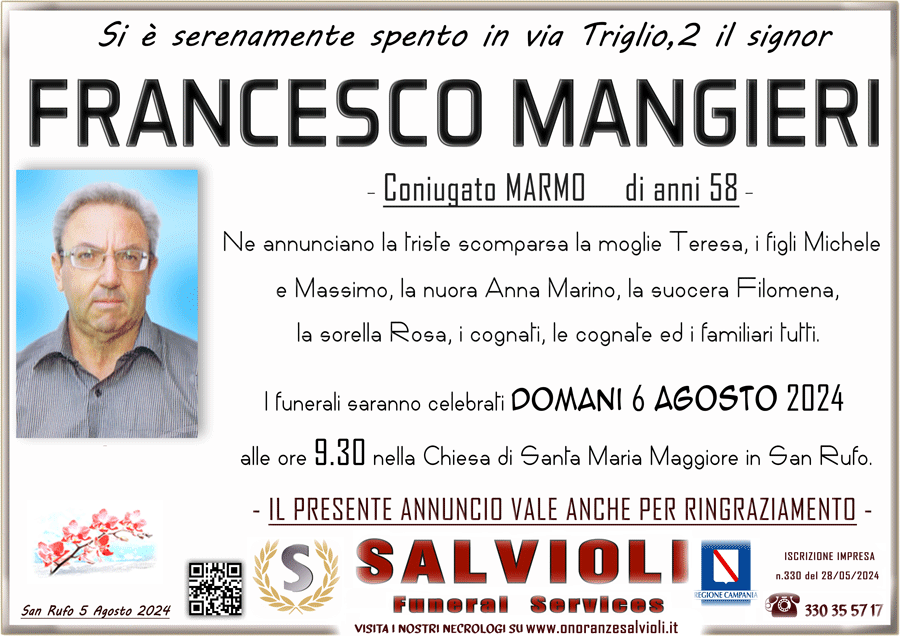 I familiari ringraziano anticipatamente tutti coloro che parteciperanno alla cerimonia funebre