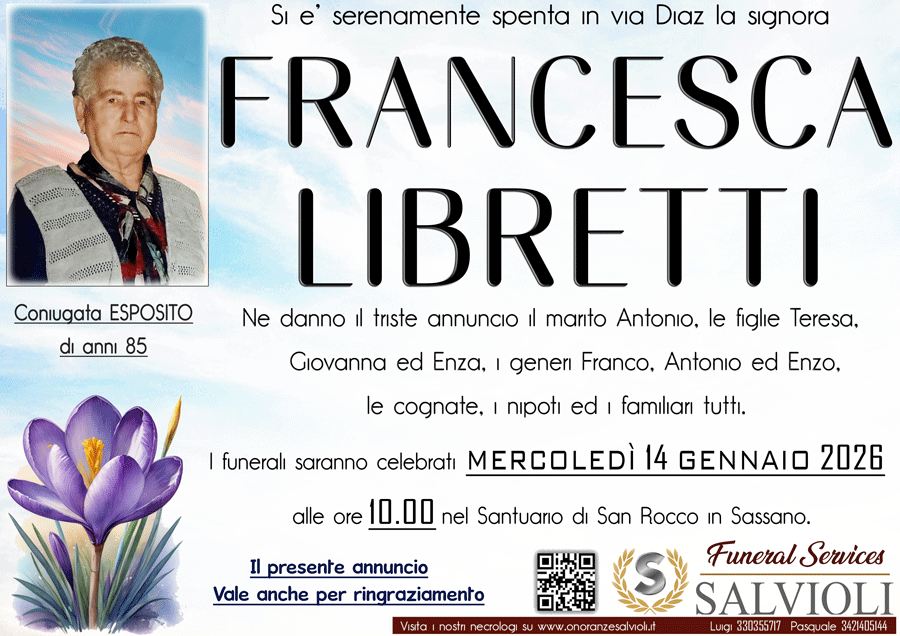 I familiari ringraziano anticipatamente tutti coloro che parteciperanno alla cerimonia funebre