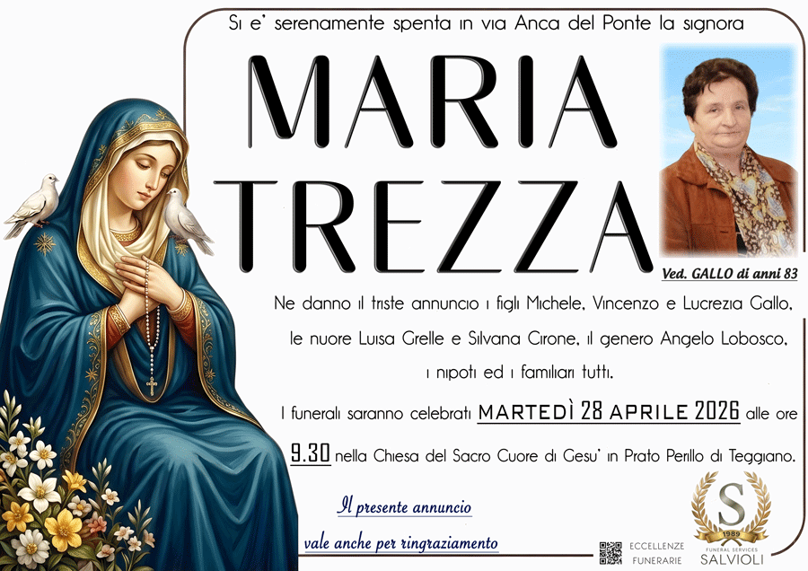 I familiari ringraziano anticipatamente tutti coloro che parteciperanno alla cerimonia funebre