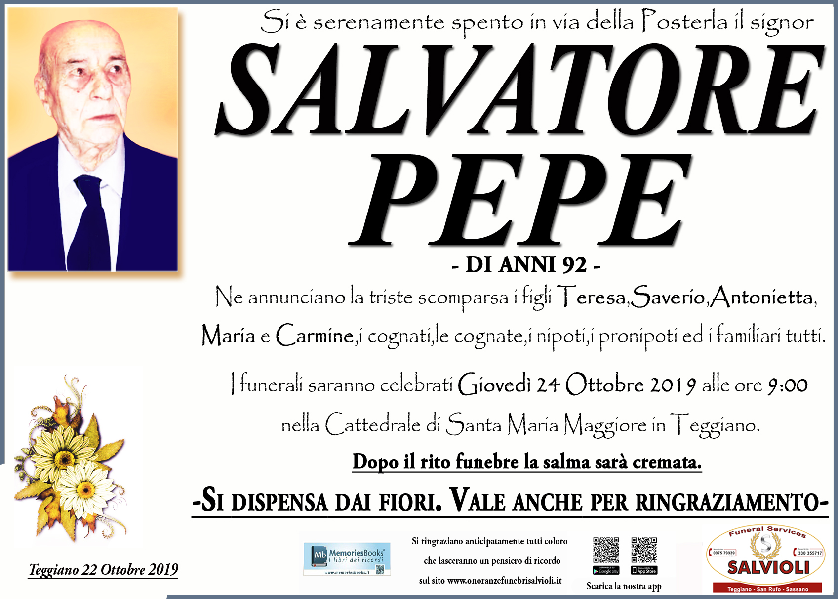 Clicca il pulsante qui sotto per visualizzare sulla mappa il luogo dove riposa Salvatore Pepe.