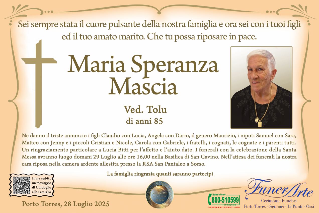 Ne danno il triste annuncio i figli Claudio con Lucia, Angela con Dario, il genero Maurizio, i nipoti Samuel con Sara, Matteo con Jenny e i piccoli Cristian e Nicole, Carola con Gabriele, i fratelli, i cognati, le cognate e i parenti tutti. Un ringraziamento particolare a Lucia Bitti per l’affetto e l’aiuto dato. I funerali con la celebrazione della Santa Messa avranno luogo domani 29 Luglio alle ore 16,00 nella Basilica di San Gavino. Nell’attesa dei funerali la nostra cara riposa nella camera ardente allestita presso la RSA San Pantaleo a Sorso.