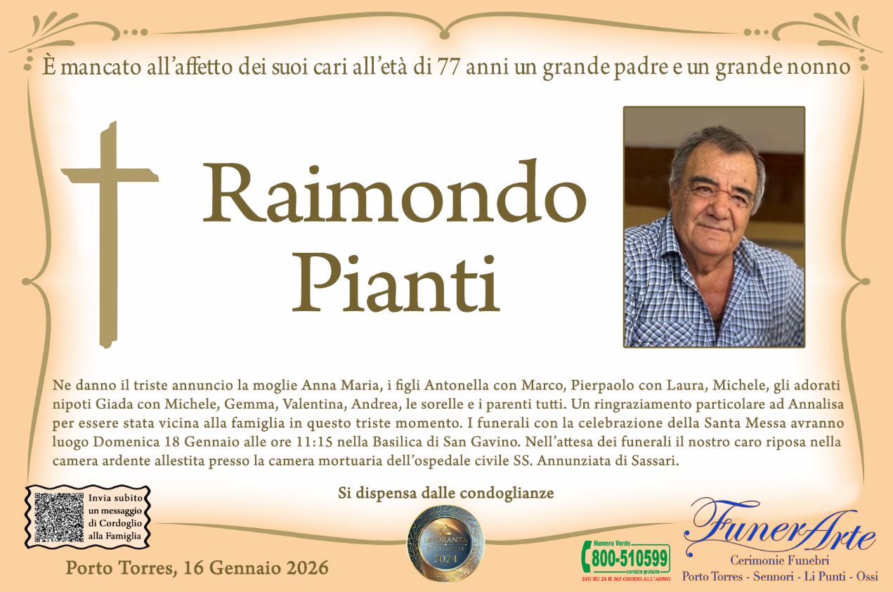 Ne danno il triste annuncio la moglie Anna Maria, i figli Antonella con Marco, Pierpaolo con Laura, Michele, gli adorati nipoti Giada con Michele, Gemma, Valentina, Andrea, le sorelle e i parenti tutti. Un ringraziamento particolare ad Annalisa per essere stata vicina alla famiglia in questo triste momento. I funerali con la celebrazione della Santa Messa avranno luogo Domenica 18 Gennaio alle ore 11:15 nella Basilica di San Gavino. Nell’attesa dei funerali il nostro caro riposa nella camera ardente allestita presso la camera mortuaria dell’ospedale civile SS. Annunziata di Sassari.