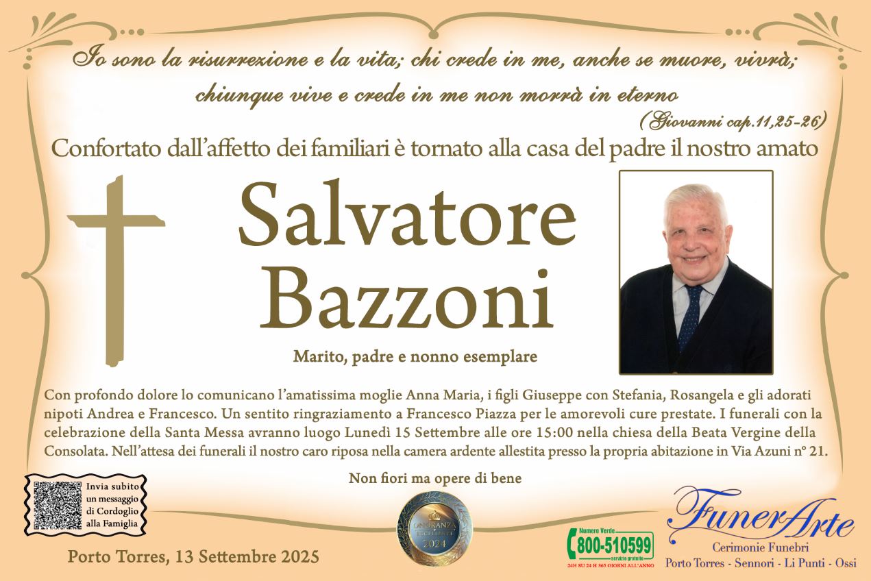 Con profondo dolore lo comunicano l’amatissima moglie Anna Maria, i figli Giuseppe con Stefania, Rosangela e gli adorati nipoti Andrea e Francesco. Un sentito ringraziamento a Francesco Piazza per le amorevoli cure prestate. I funerali con la celebrazione della Santa Messa avranno luogo Lunedì 15 Settembre alle ore 15:00 nella chiesa della Beata Vergine della Consolata. Nell’attesa dei funerali il nostro caro riposa nella camera ardente allestita presso la propria abitazione in Via Azuni n° 21.