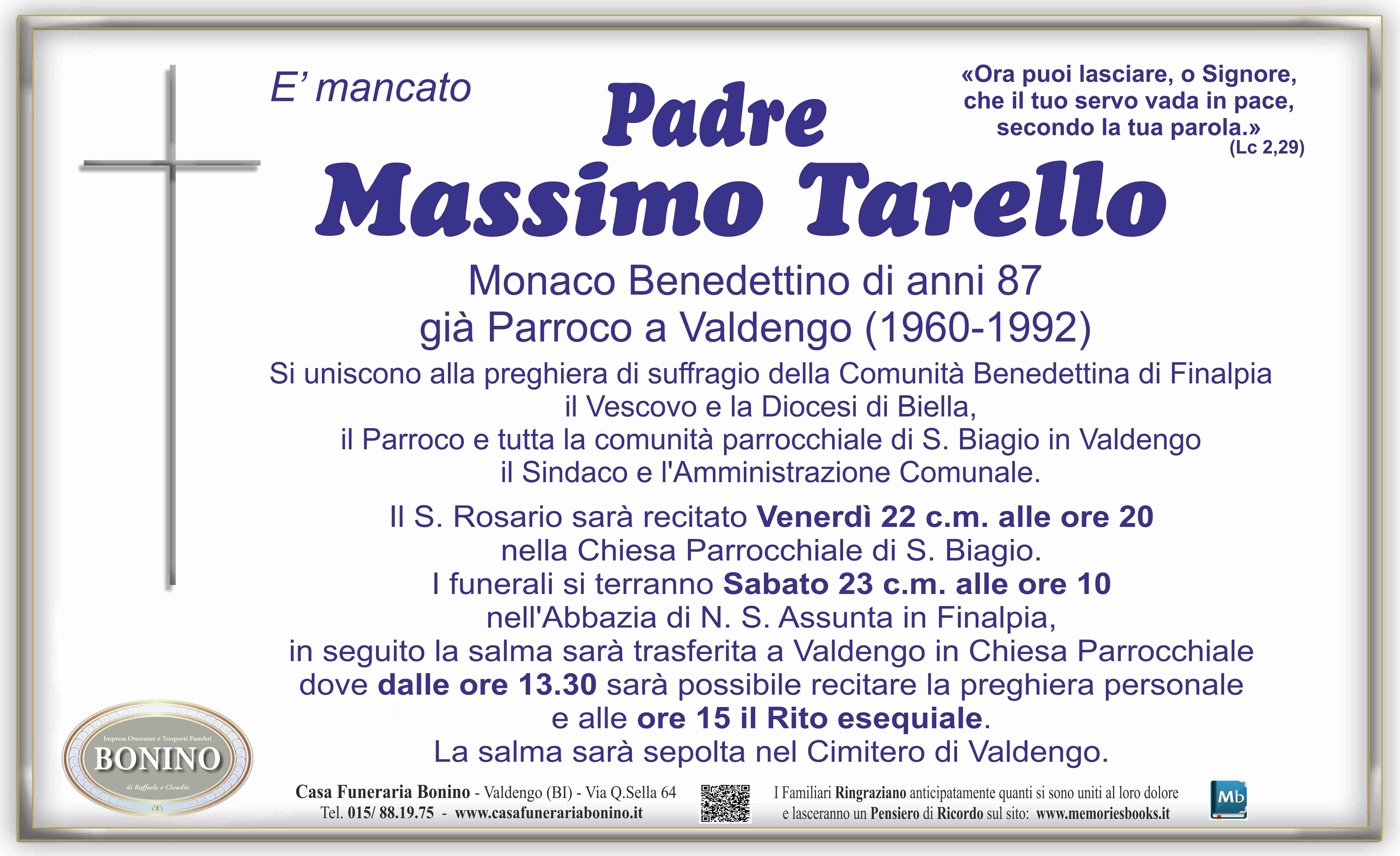 Caro P. Massimo, da lontano ho appreso in ritardo del tuo passaggio alla vita eterna e non ho potuto partecipare alle esequie, ma so che riposi a Valdengo nel luogo che reca la più consolante Parola della nostra fede: "Resurrecturi". Questa scritta ci era stata più volte da te citata e mi è rimasta vivamente impressa. Ti prometto una mia visita e una preghiera. A te che sapevi di latino e frequentavi la Sacra Bibbia ripeterò le filiali, fidenti parole del profeta Giobbe: "Ipse dedit, Ipse sustulit. Laudetur semper Ipse".