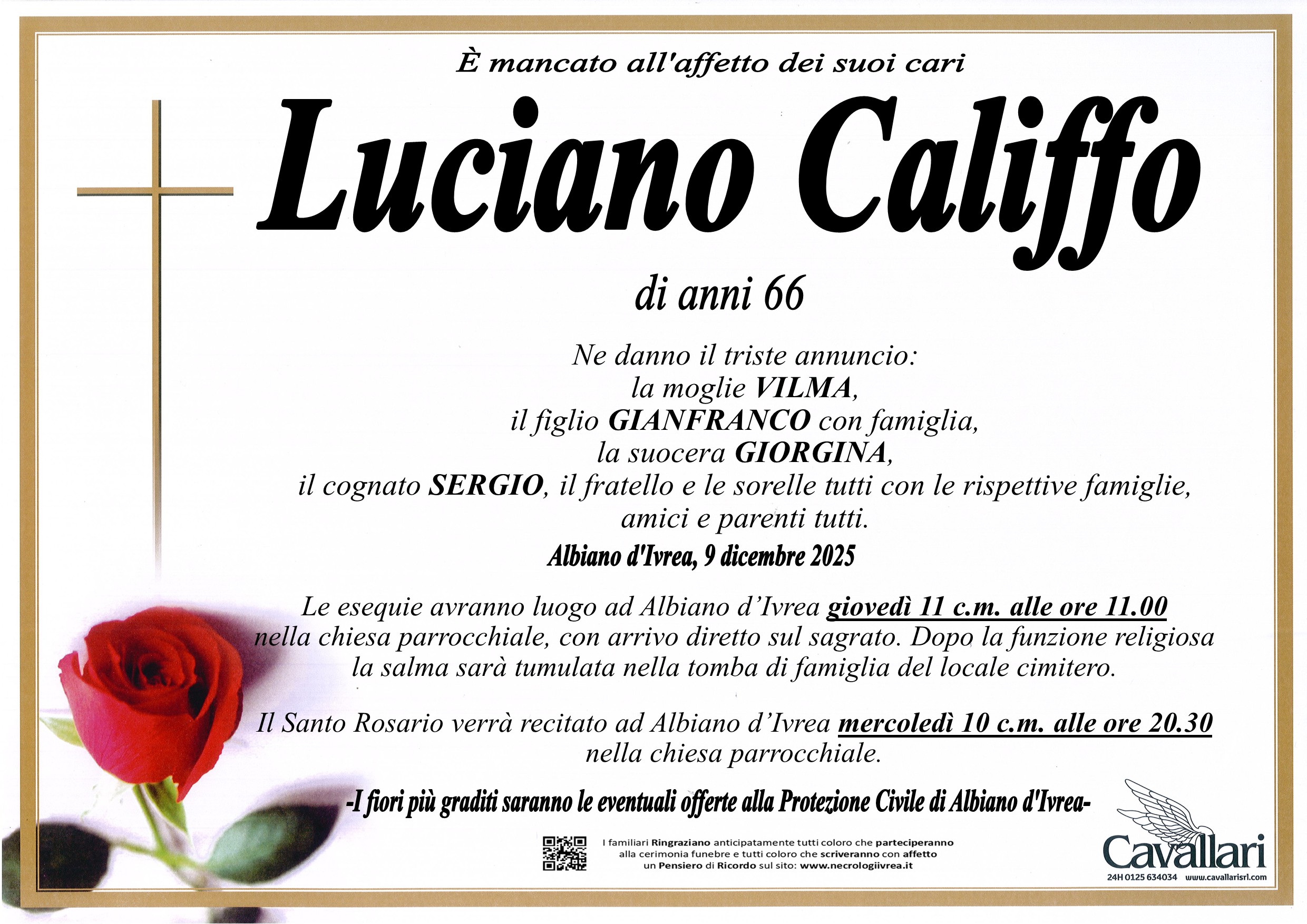 I familiari ringraziano anticipatamente tutti coloro che parteciperanno alla cerimonia funebre