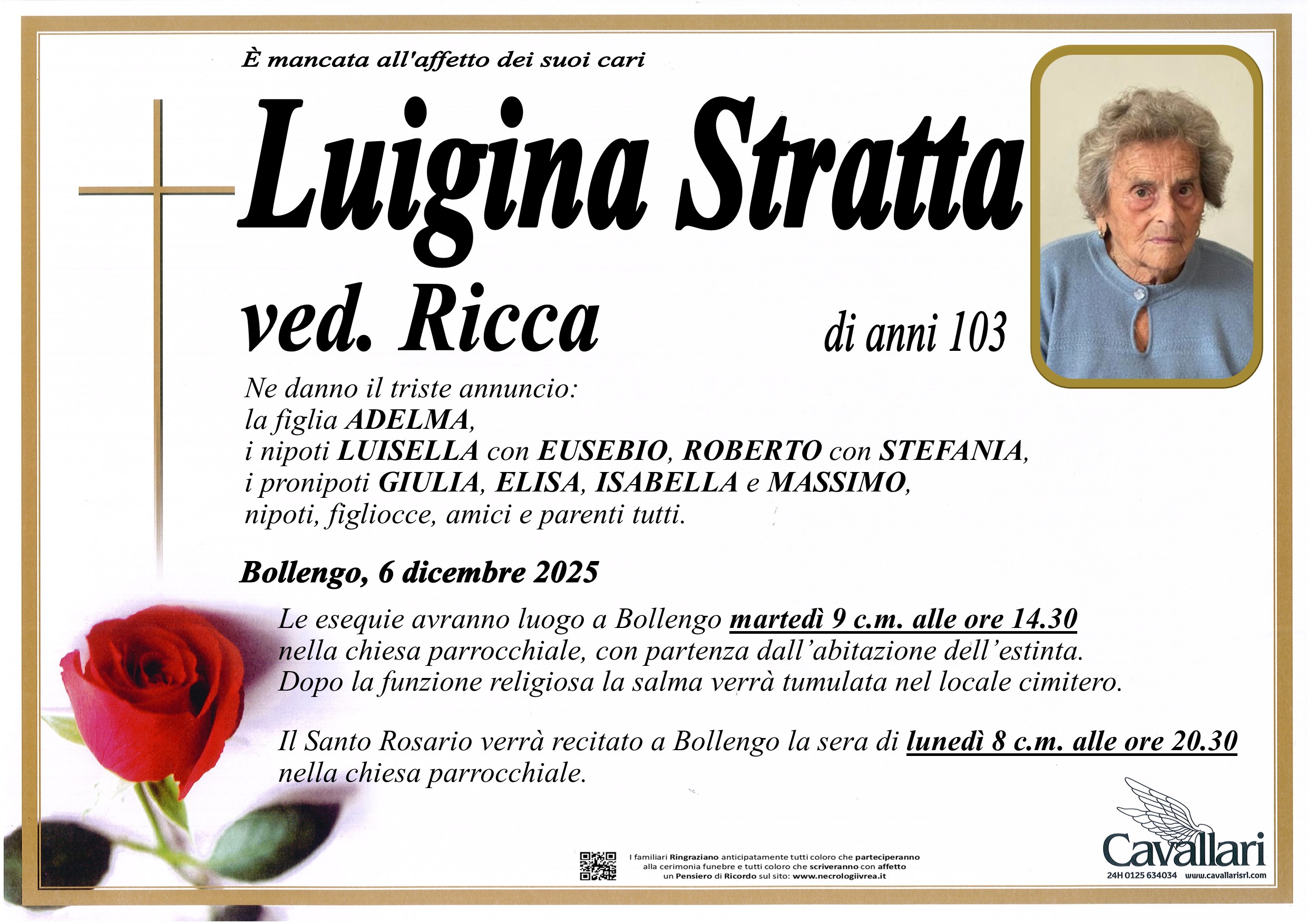 I familiari ringraziano anticipatamente tutti coloro che parteciperanno alla cerimonia funebre