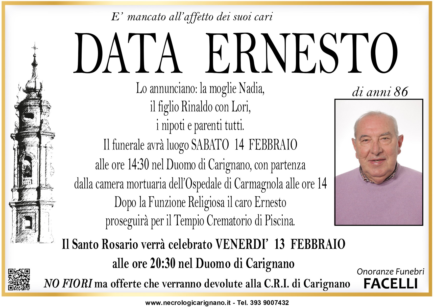 I familiari ringraziano anticipatamente tutti coloro che parteciperanno alla cerimonia funebre