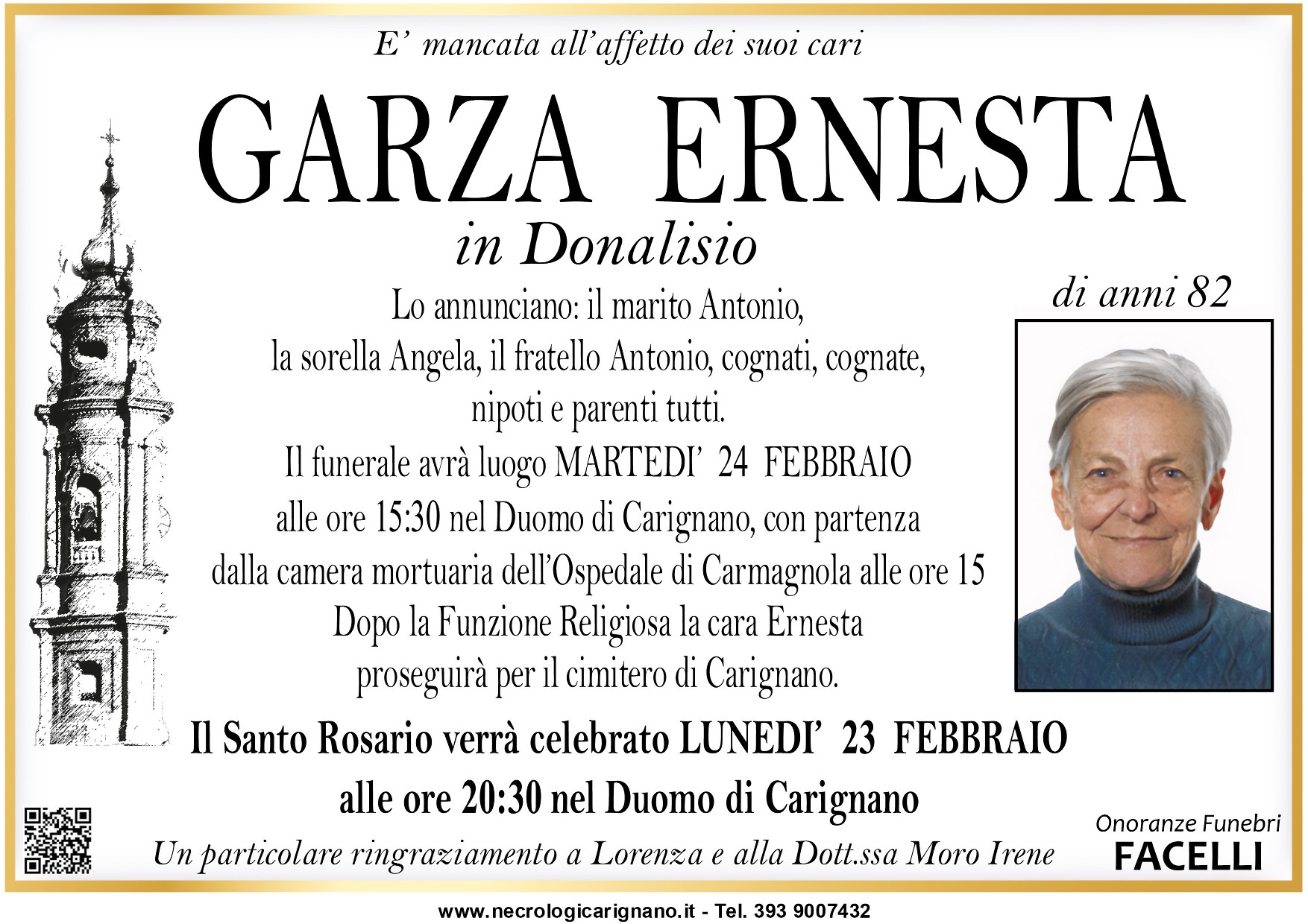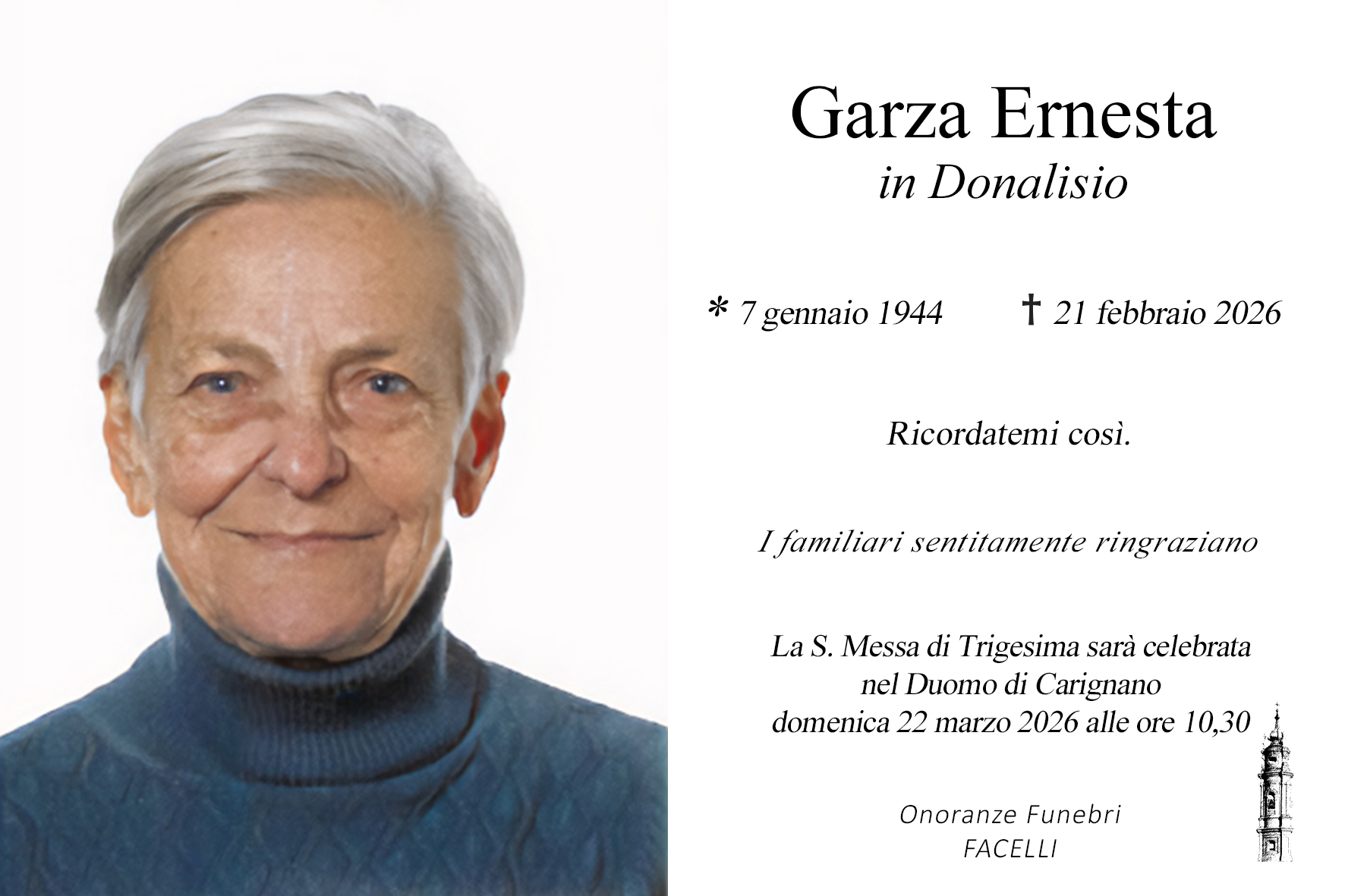 I familiari ringraziano anticipatamente tutti coloro che parteciperanno alla cerimonia funebre