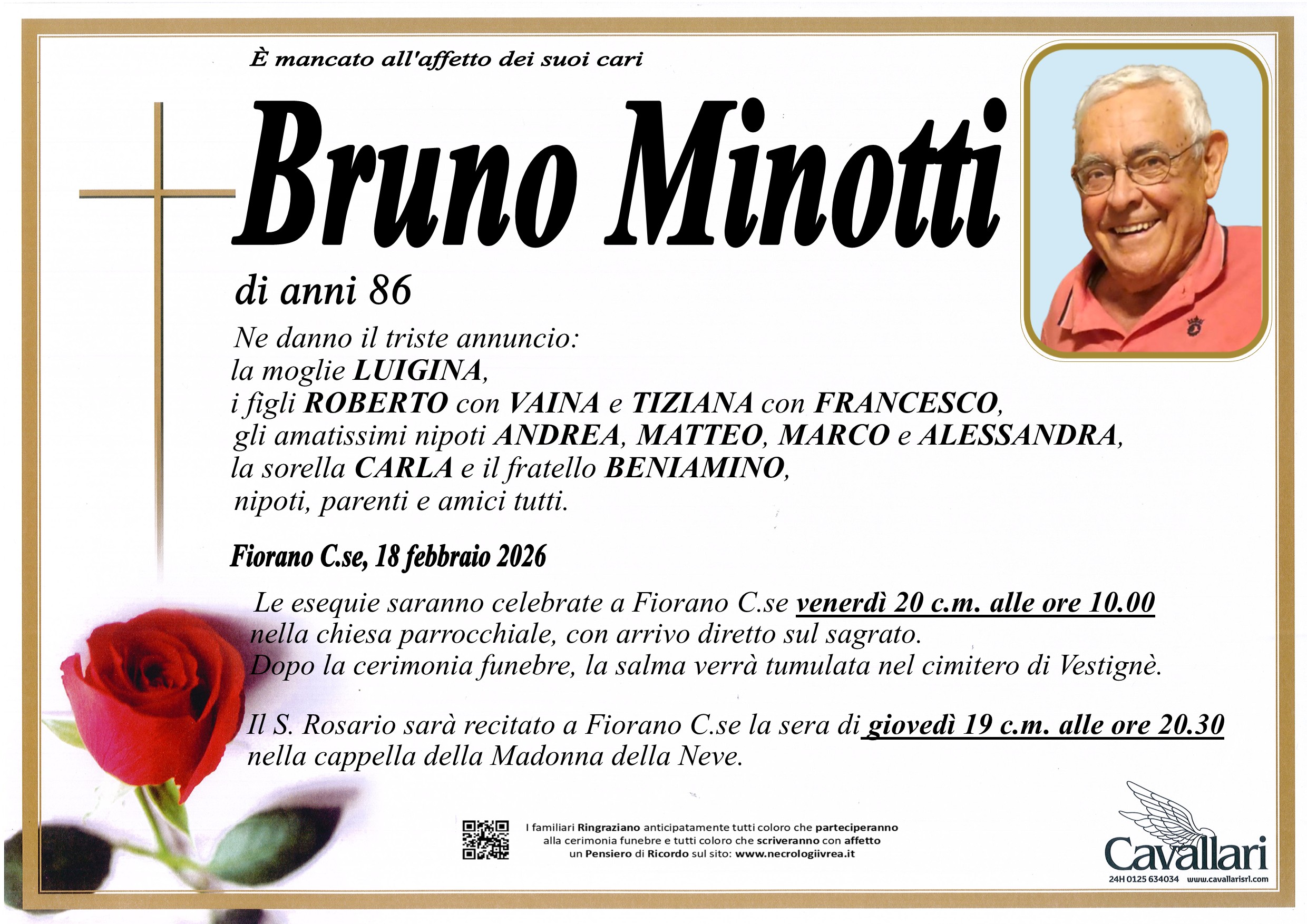 I familiari ringraziano anticipatamente tutti coloro che parteciperanno alla cerimonia funebre