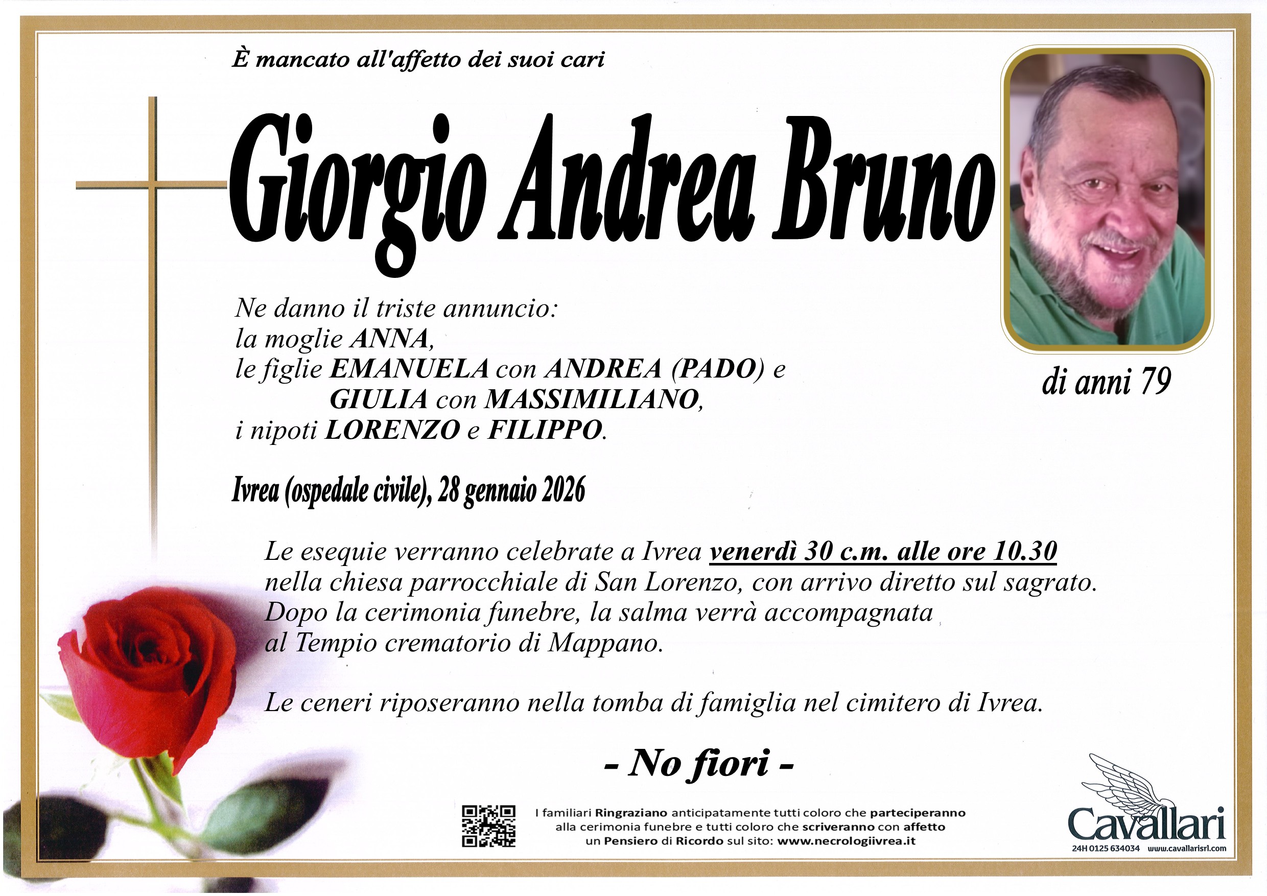 I familiari ringraziano anticipatamente tutti coloro che parteciperanno alla cerimonia funebre