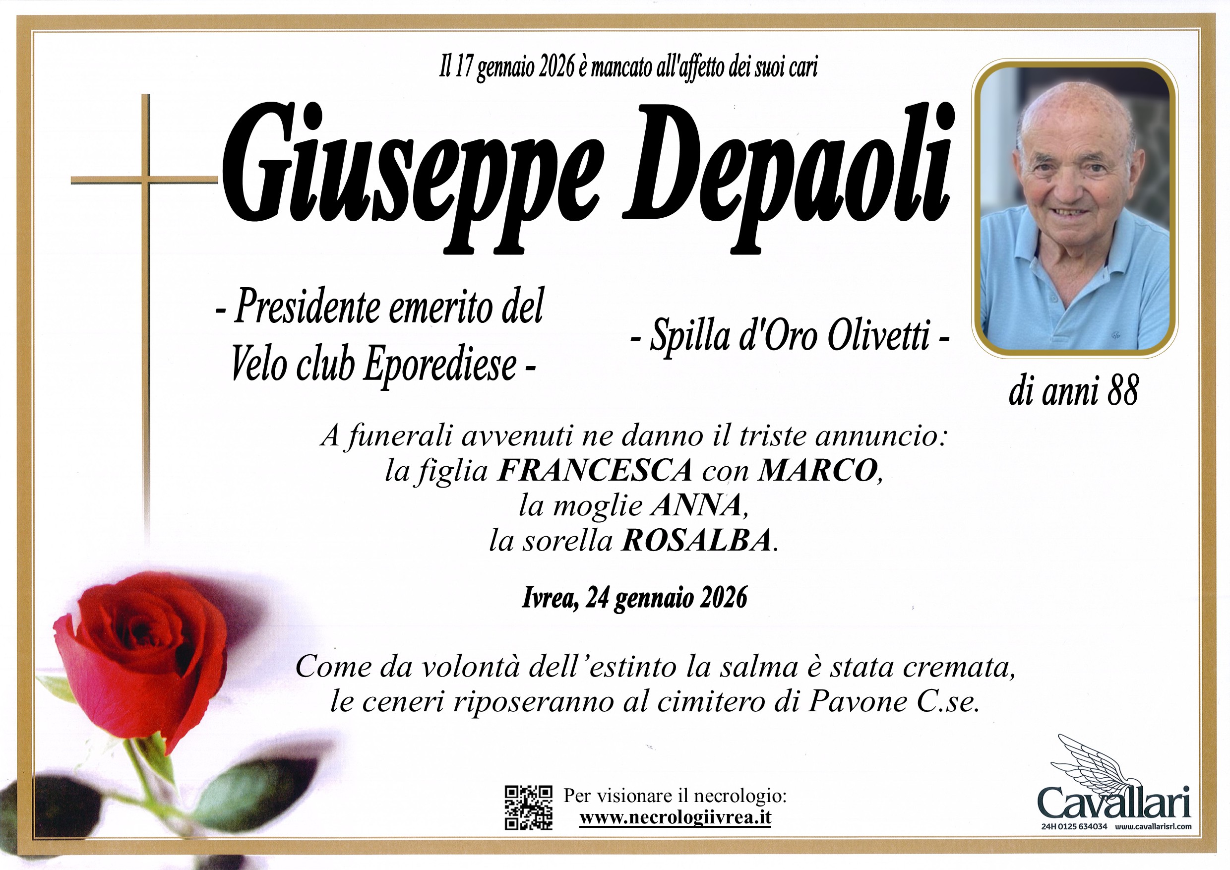 I familiari ringraziano anticipatamente tutti coloro che parteciperanno alla cerimonia funebre