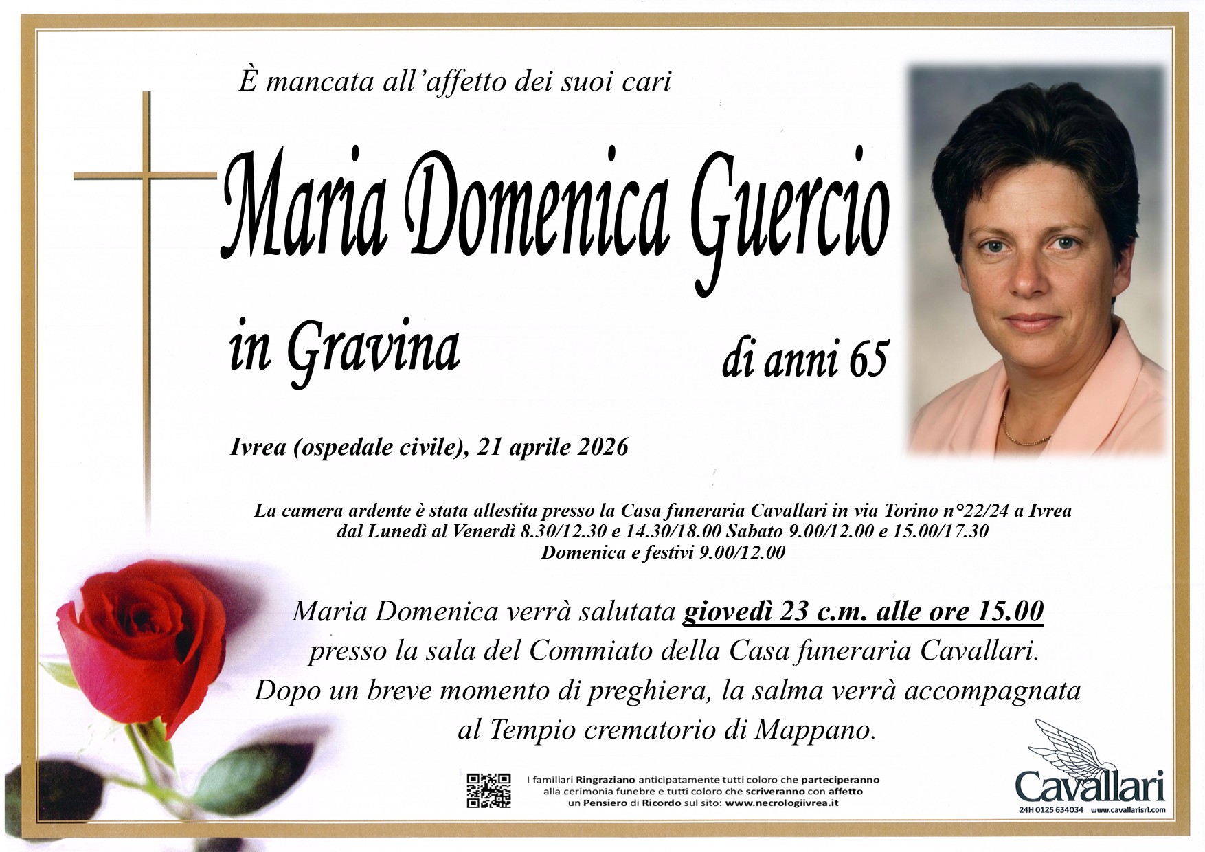 I familiari ringraziano anticipatamente tutti coloro che parteciperanno alla cerimonia funebre