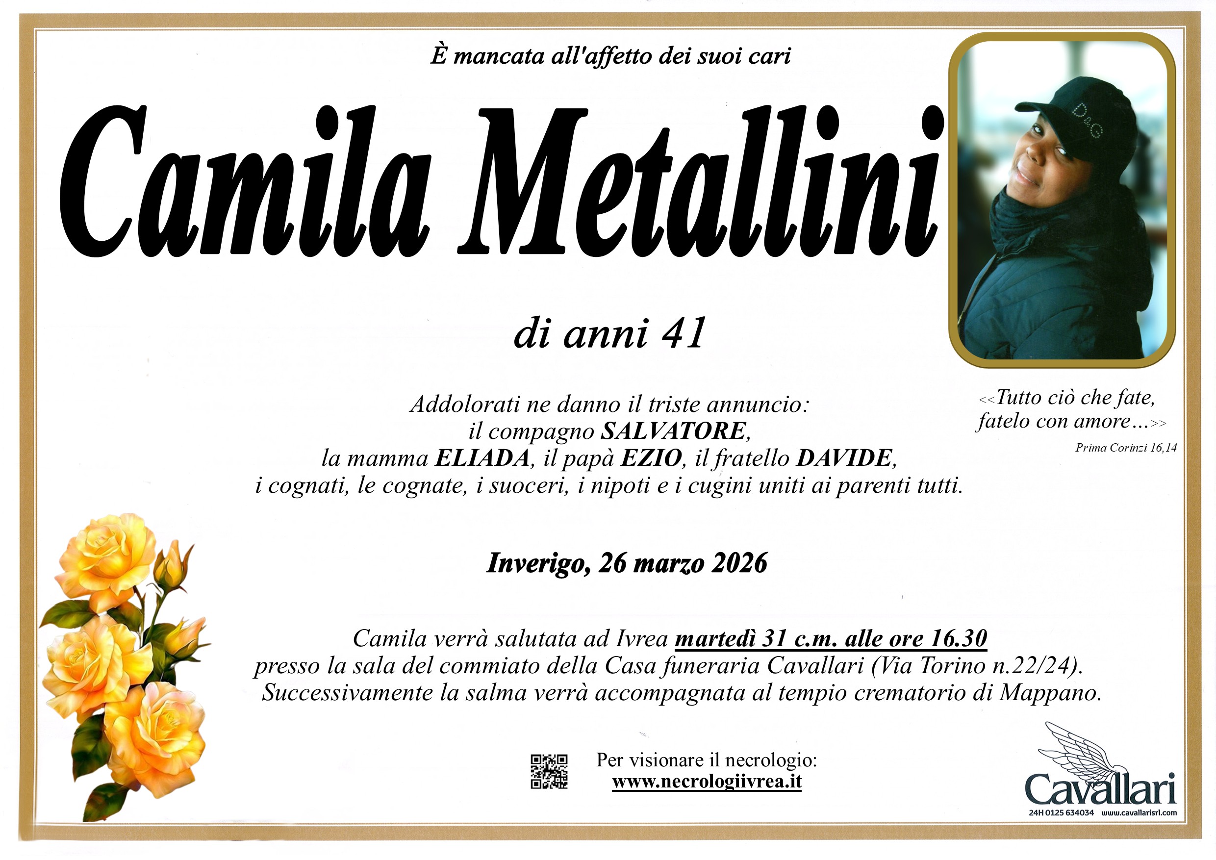 I familiari ringraziano anticipatamente tutti coloro che parteciperanno alla cerimonia funebre