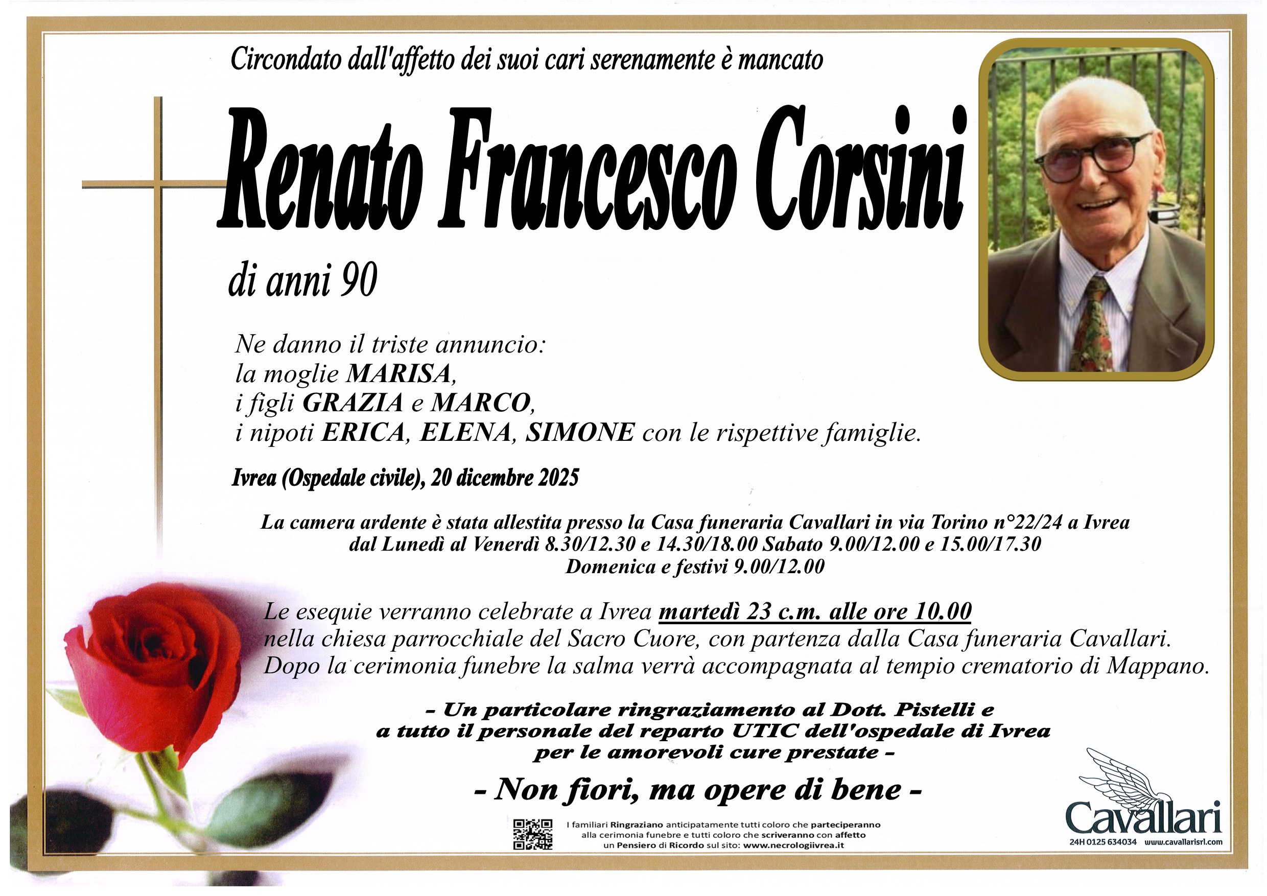I familiari ringraziano anticipatamente tutti coloro che parteciperanno alla cerimonia funebre