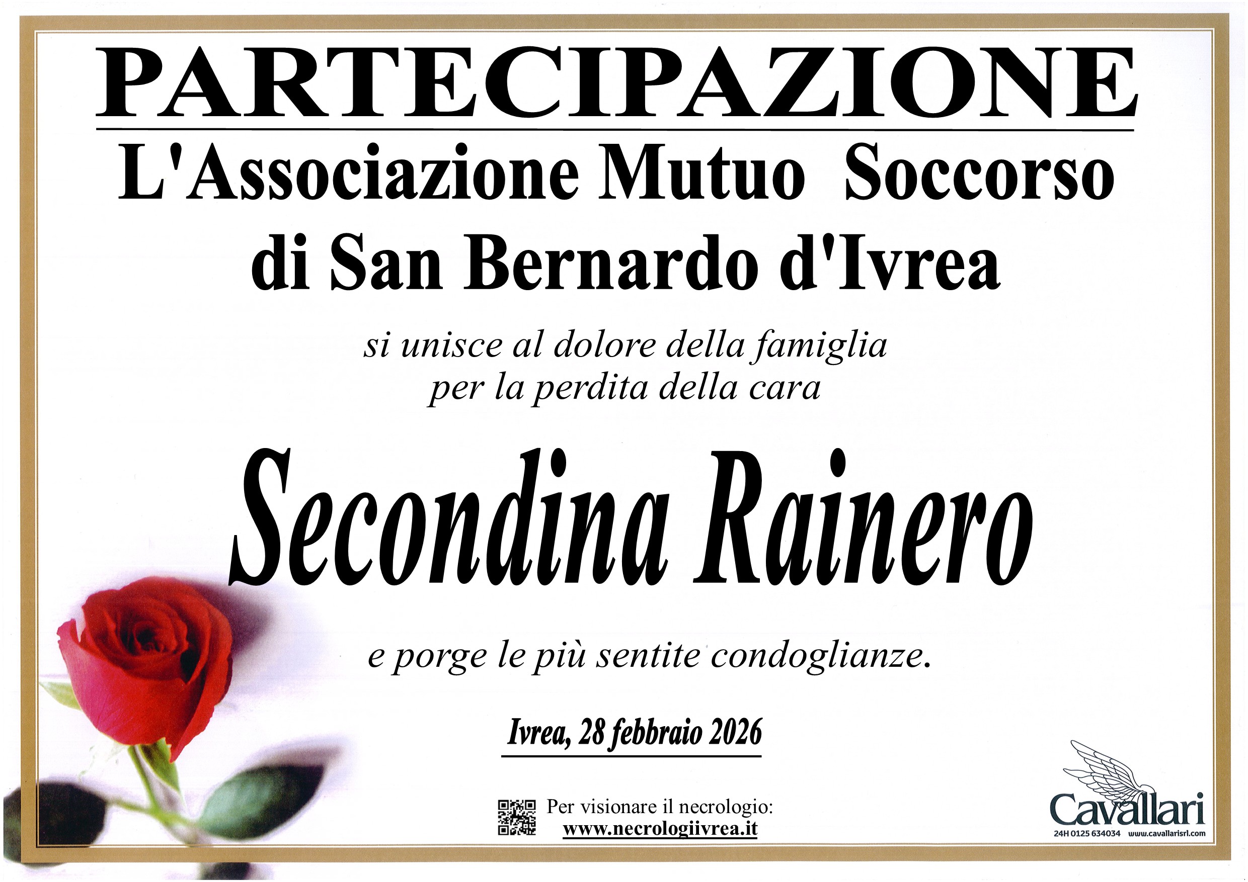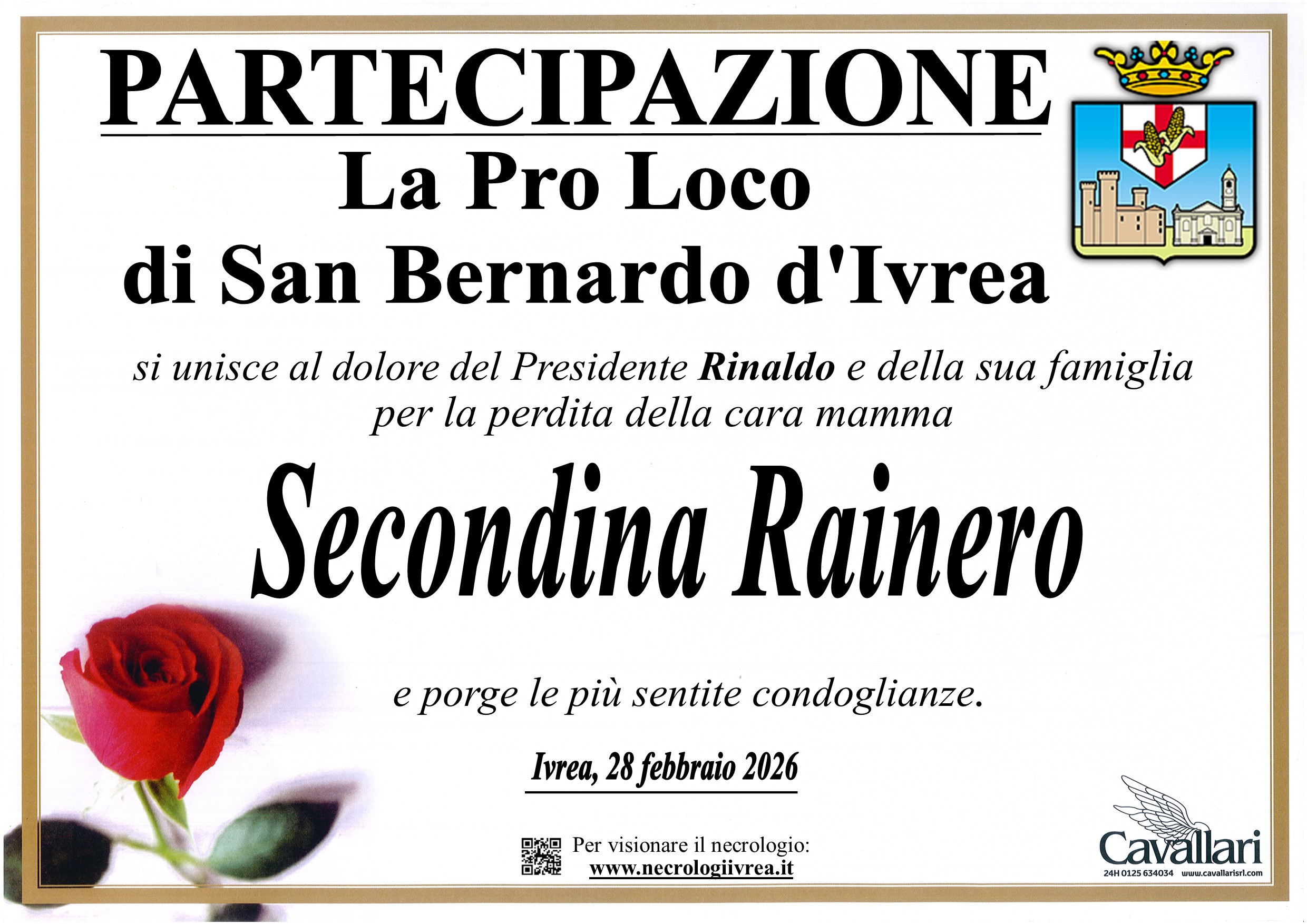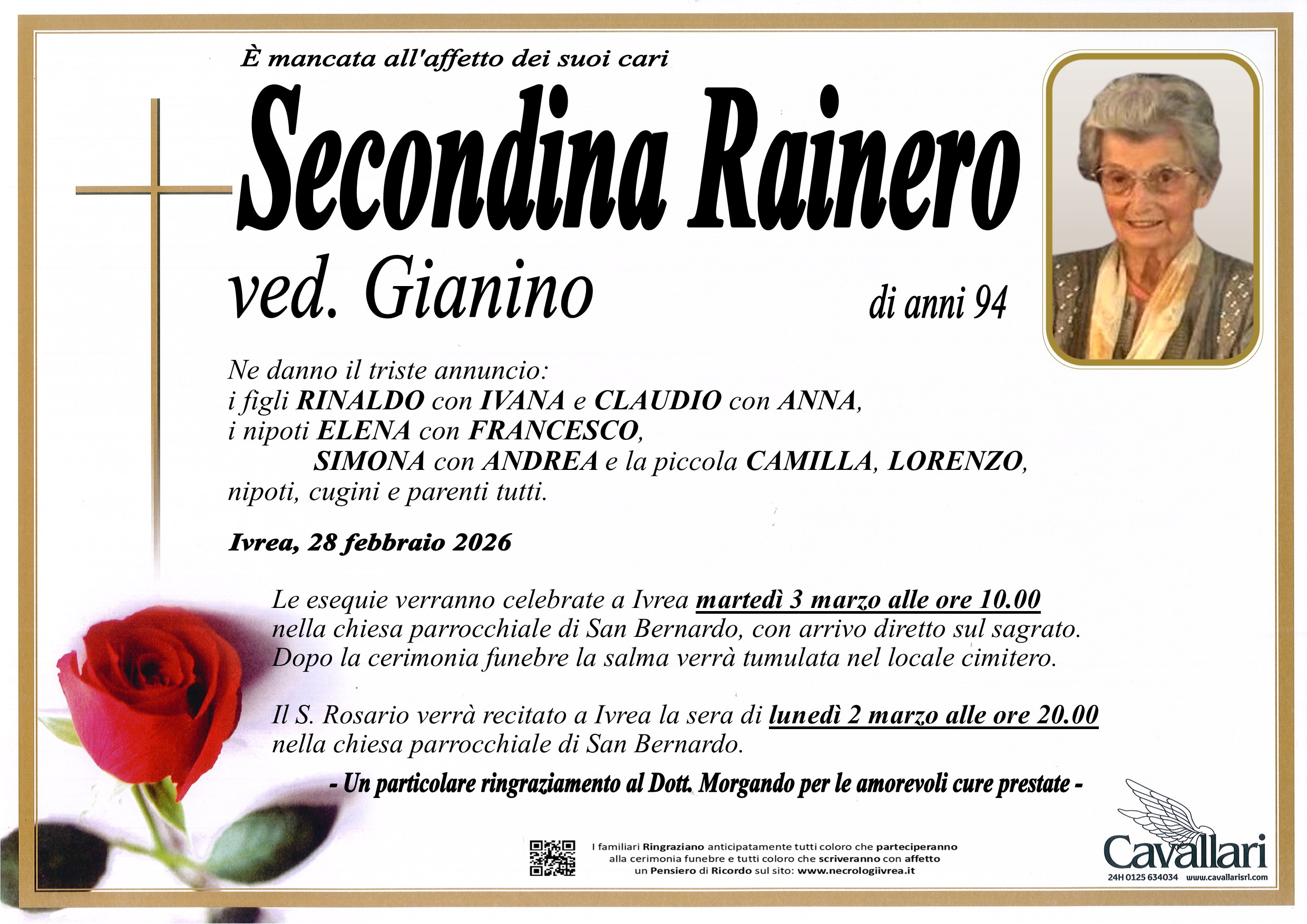 I familiari ringraziano anticipatamente tutti coloro che parteciperanno alla cerimonia funebre