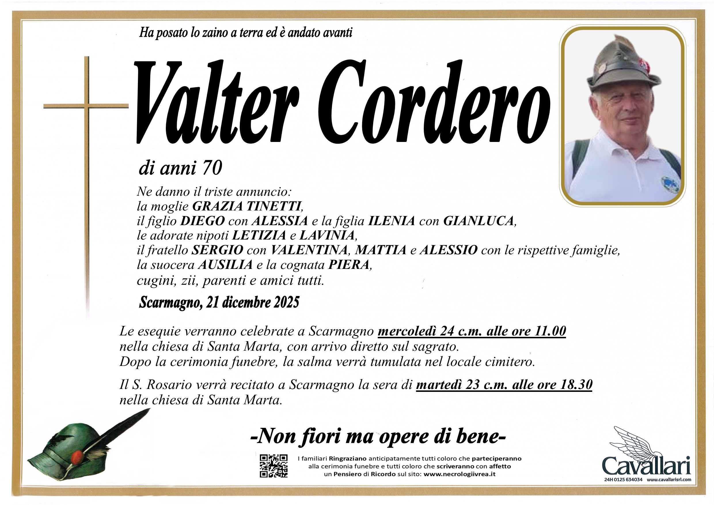 I familiari ringraziano anticipatamente tutti coloro che parteciperanno alla cerimonia funebre