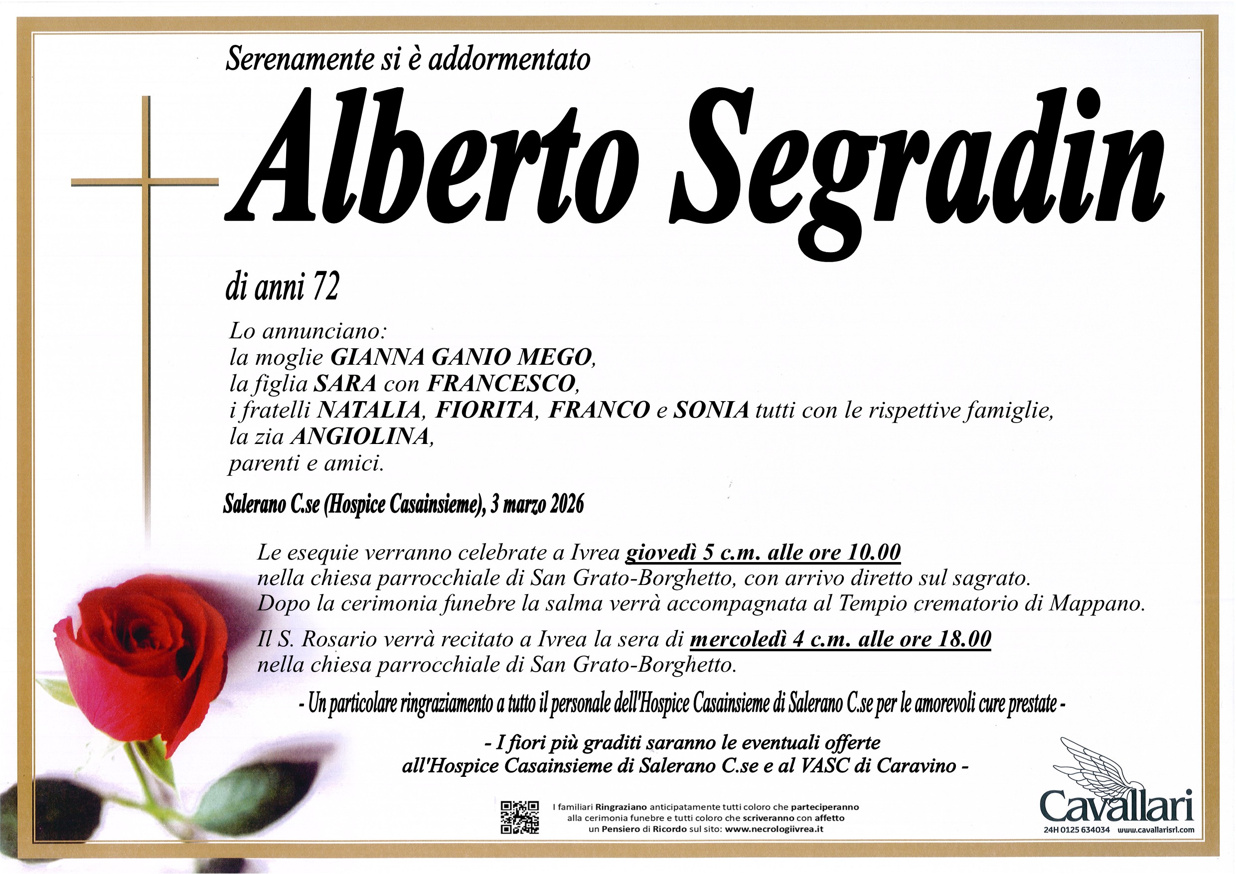 I familiari ringraziano anticipatamente tutti coloro che parteciperanno alla cerimonia funebre