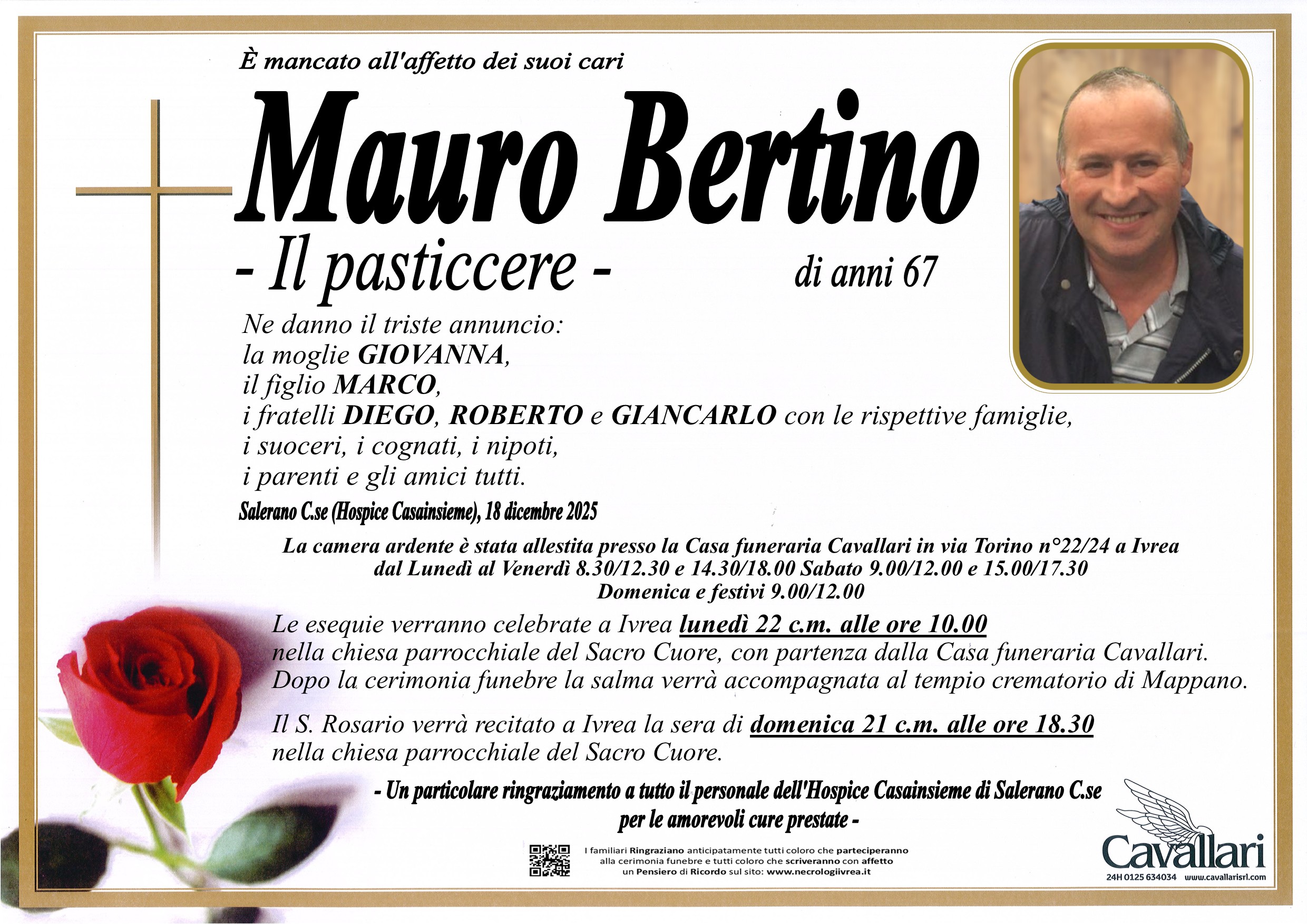 I familiari ringraziano anticipatamente tutti coloro che parteciperanno alla cerimonia funebre