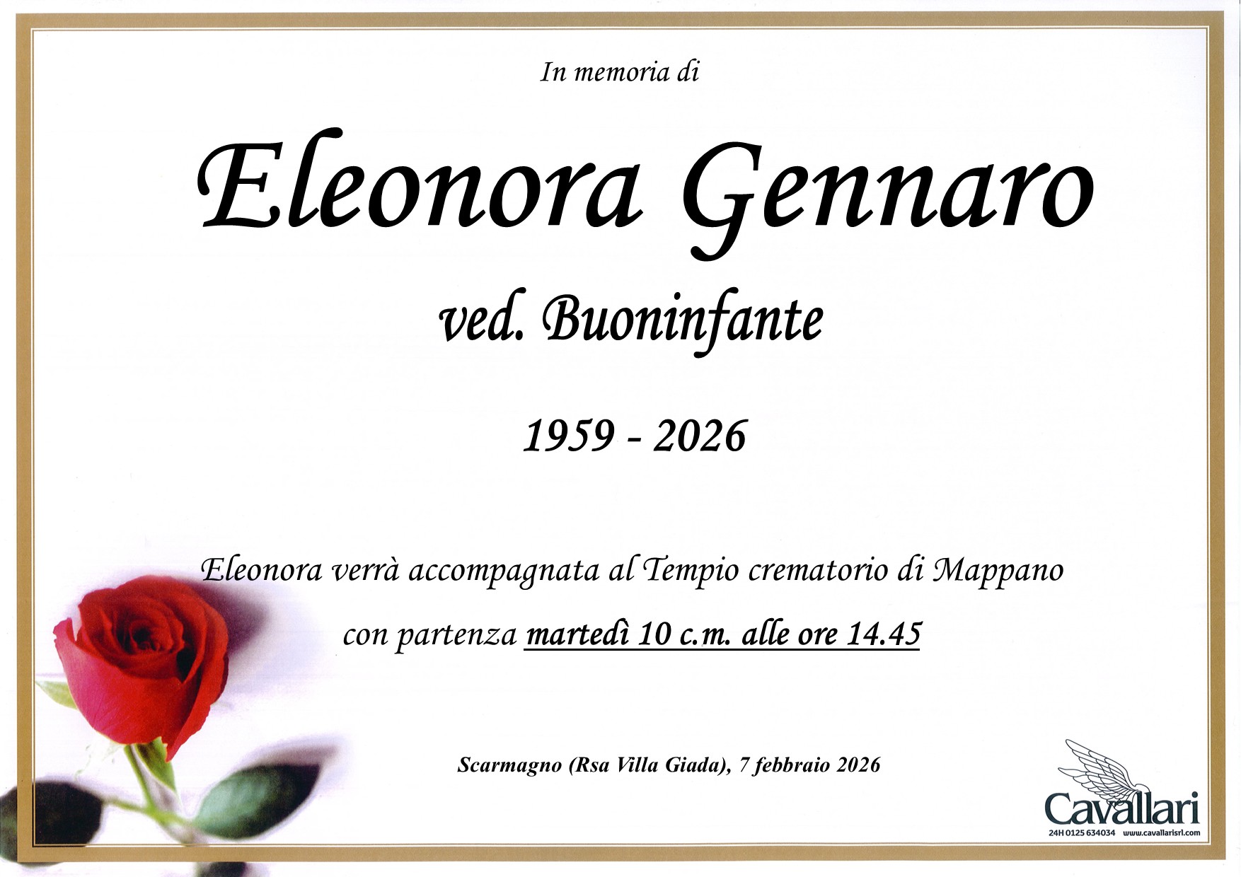 I familiari ringraziano anticipatamente tutti coloro che parteciperanno alla cerimonia funebre