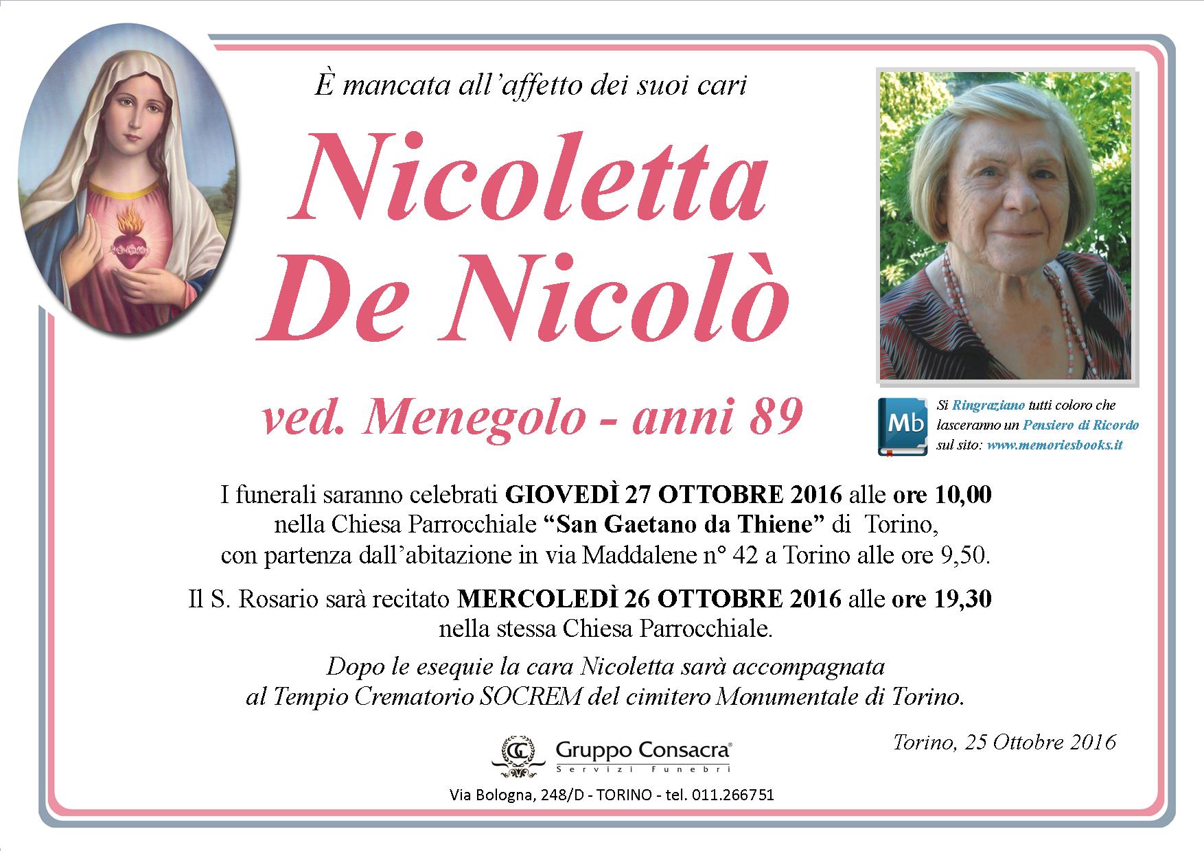 Clicca il pulsante qui sotto per visualizzare sulla mappa il luogo dove riposa Nicoletta De Nicolò Menegolo.