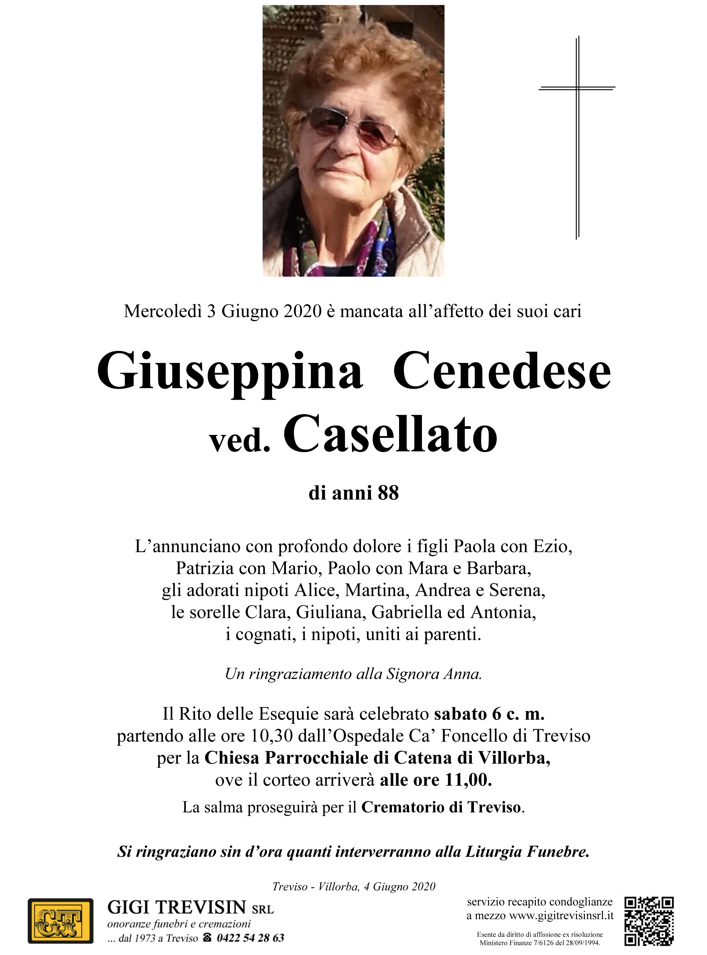 Clicca il pulsante qui sotto per visualizzare sulla mappa il luogo dove riposa Giuseppina Cenedese Casellato.