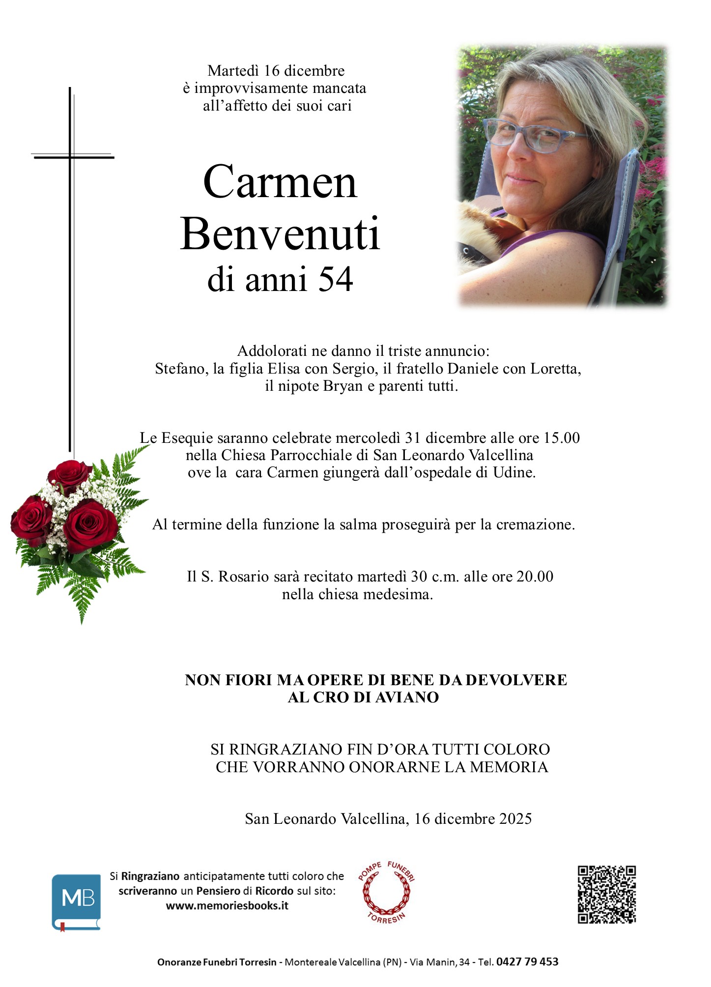 Le mie più sentite condoglianze per la scomparsa della vostra cara Carmen.