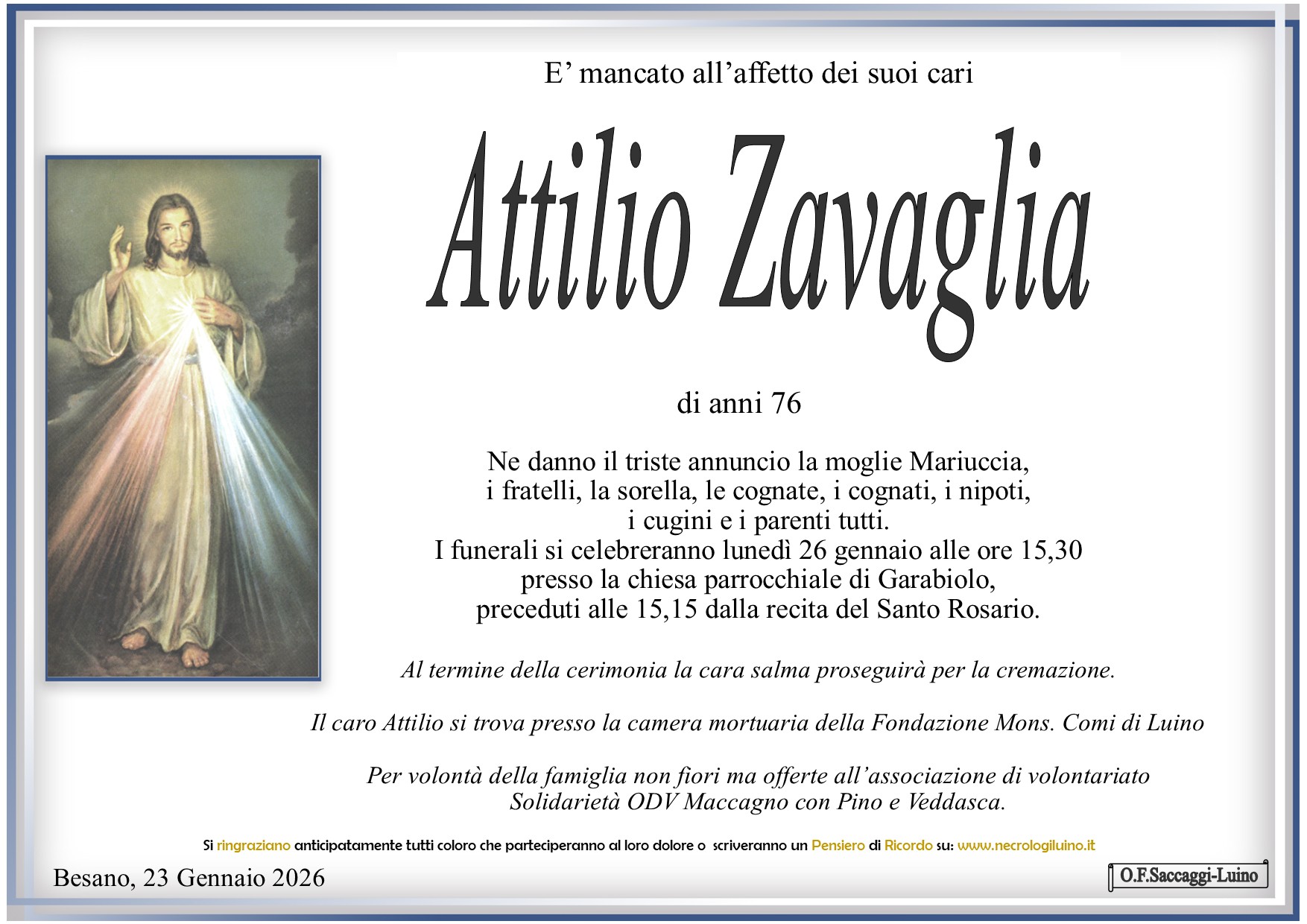 I familiari ringraziano anticipatamente tutti coloro che parteciperanno alla cerimonia funebre