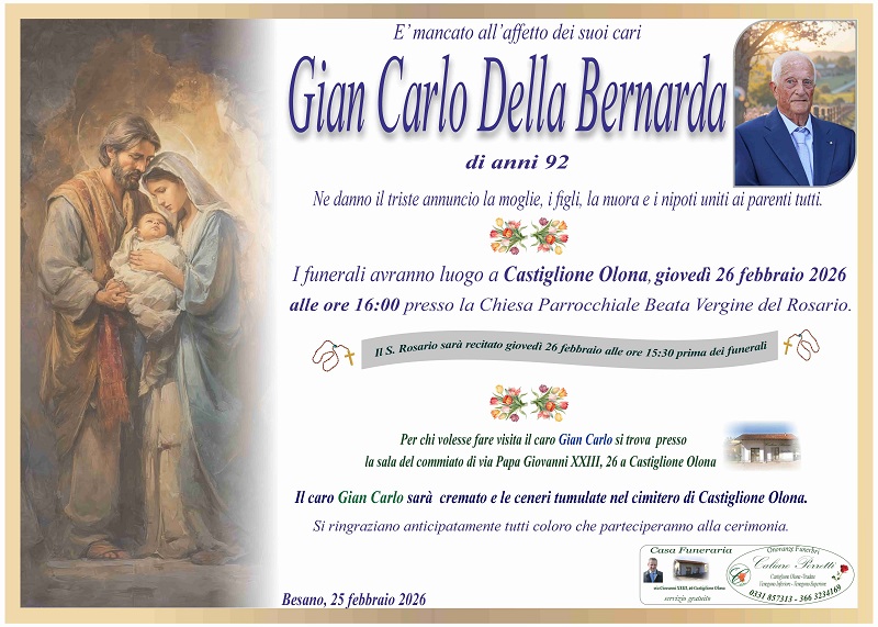 I funerali avranno luogo a Castiglione Olona, giovedì 26 febbraio 2026