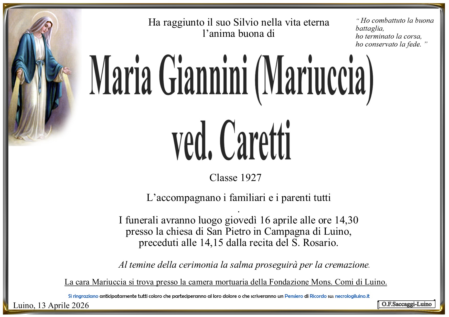 I familiari ringraziano anticipatamente tutti coloro che parteciperanno alla cerimonia funebre