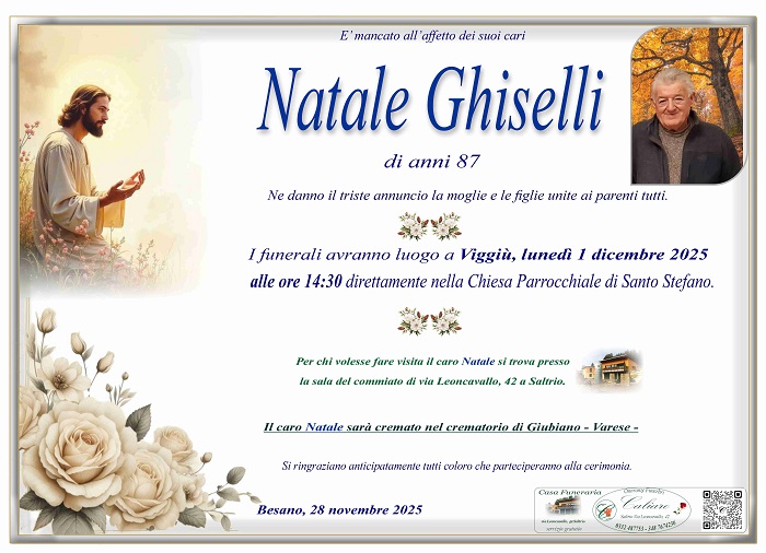 I funerali avranno luogo a Viggiù, lunedì 1 dicembre 2025