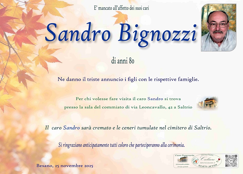 Il caro Sandro sarà cremato e le ceneri tumulate nel cimitero di Saltrio.