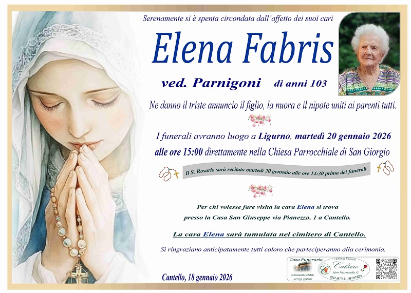 Il S. Rosario sarà recitato martedì 20 gennaio alle ore 14:30 prima dei funerali.