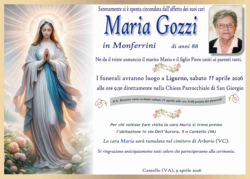 La cara Maria sarà tumulata nel cimitero di Arborio (VC)