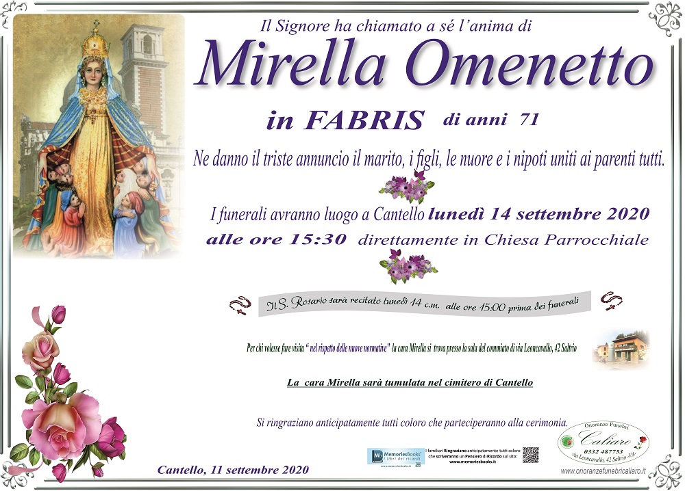 Clicca il pulsante qui sotto per visualizzare sulla mappa il luogo dove riposa Mirella Omenetto Fabris.