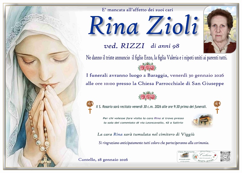 Il S. Rosario sarà recitato venerdì 30 gennaio alle ore 9:30 prima dei funerali.