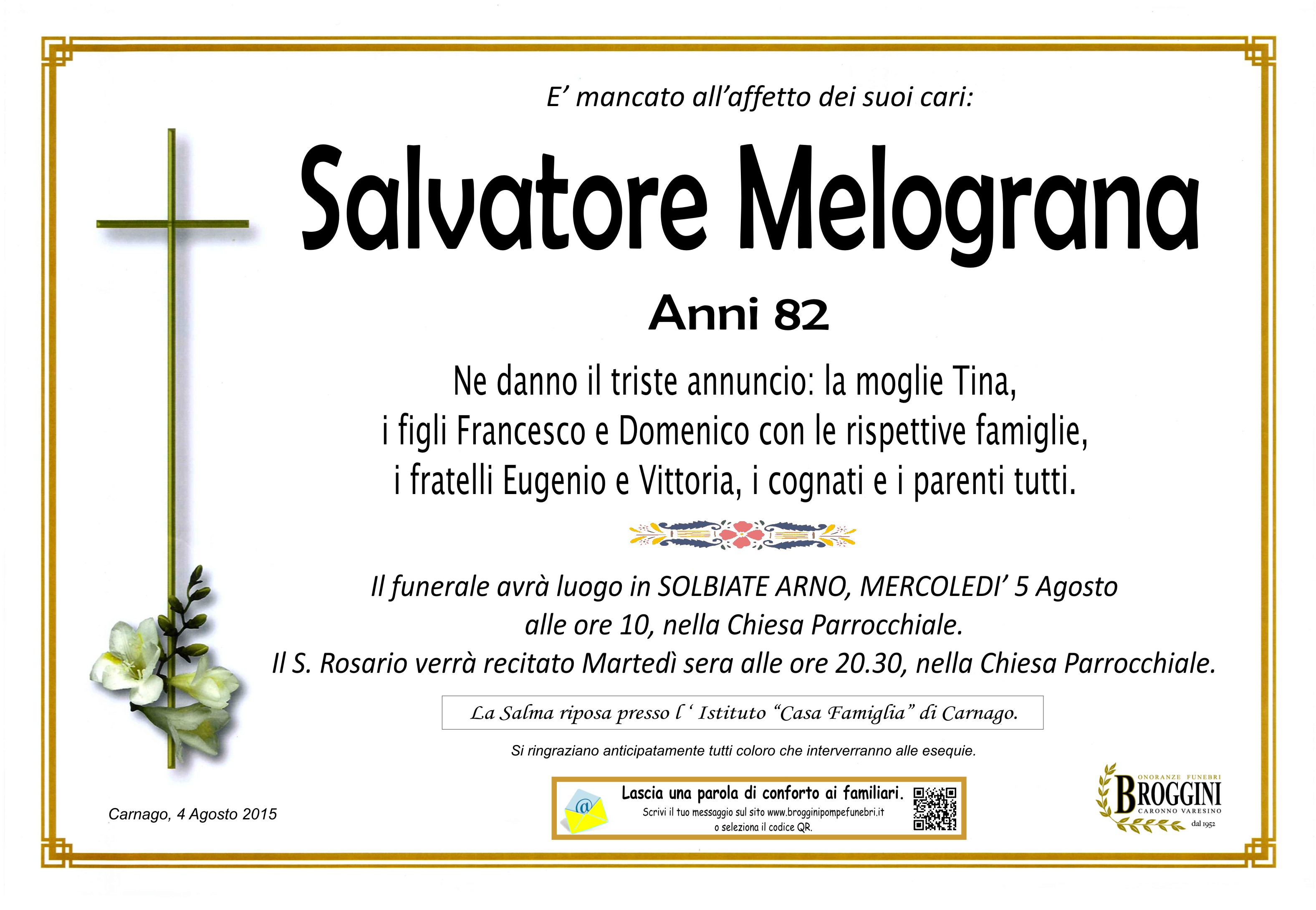 Clicca il pulsante qui sotto per visualizzare sulla mappa il luogo dove riposa Salvatore Melograna.