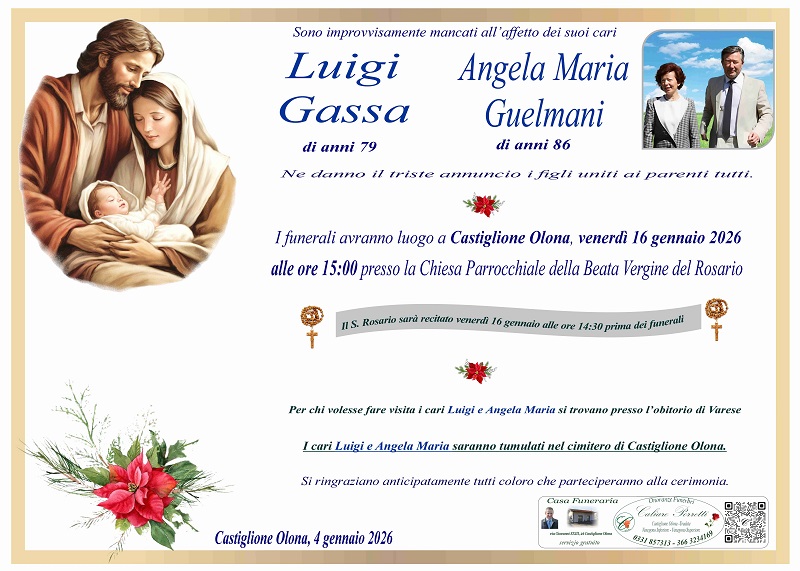 I cari Angela Maria e Luigi saranno tumulati nel cimitero di Castiglione Olona.