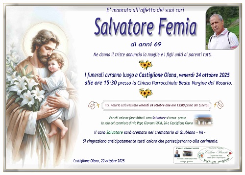 Il caro Salvatore sarà cremato nel crematorio di Giubiano - VA -