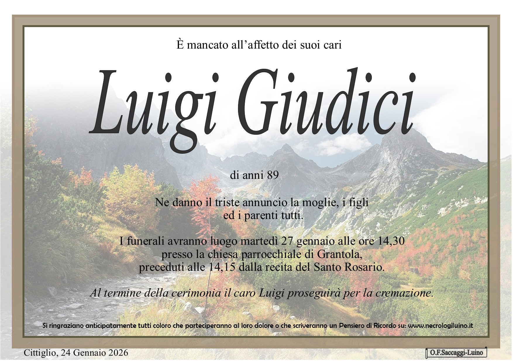 I familiari ringraziano anticipatamente tutti coloro che parteciperanno alla cerimonia funebre