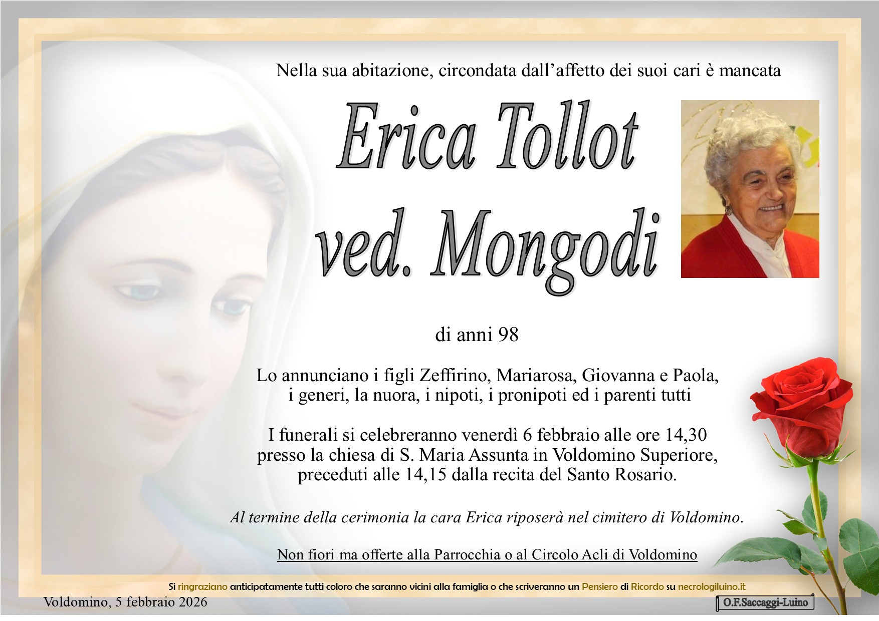 I familiari ringraziano anticipatamente tutti coloro che parteciperanno alla cerimonia funebre