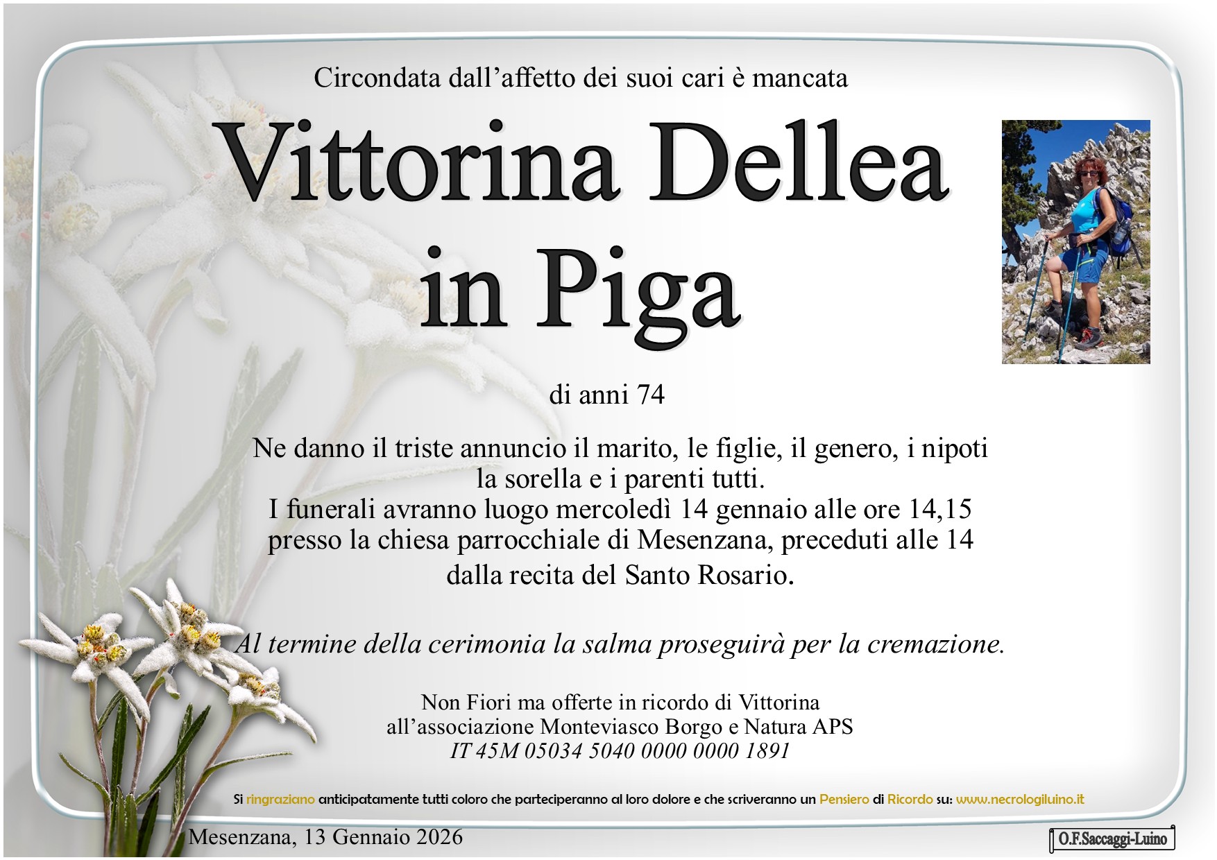I familiari ringraziano anticipatamente tutti coloro che parteciperanno alla cerimonia funebre